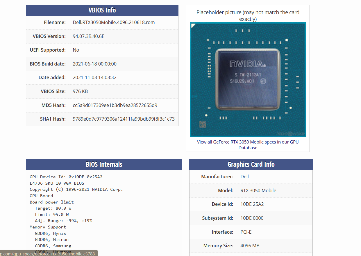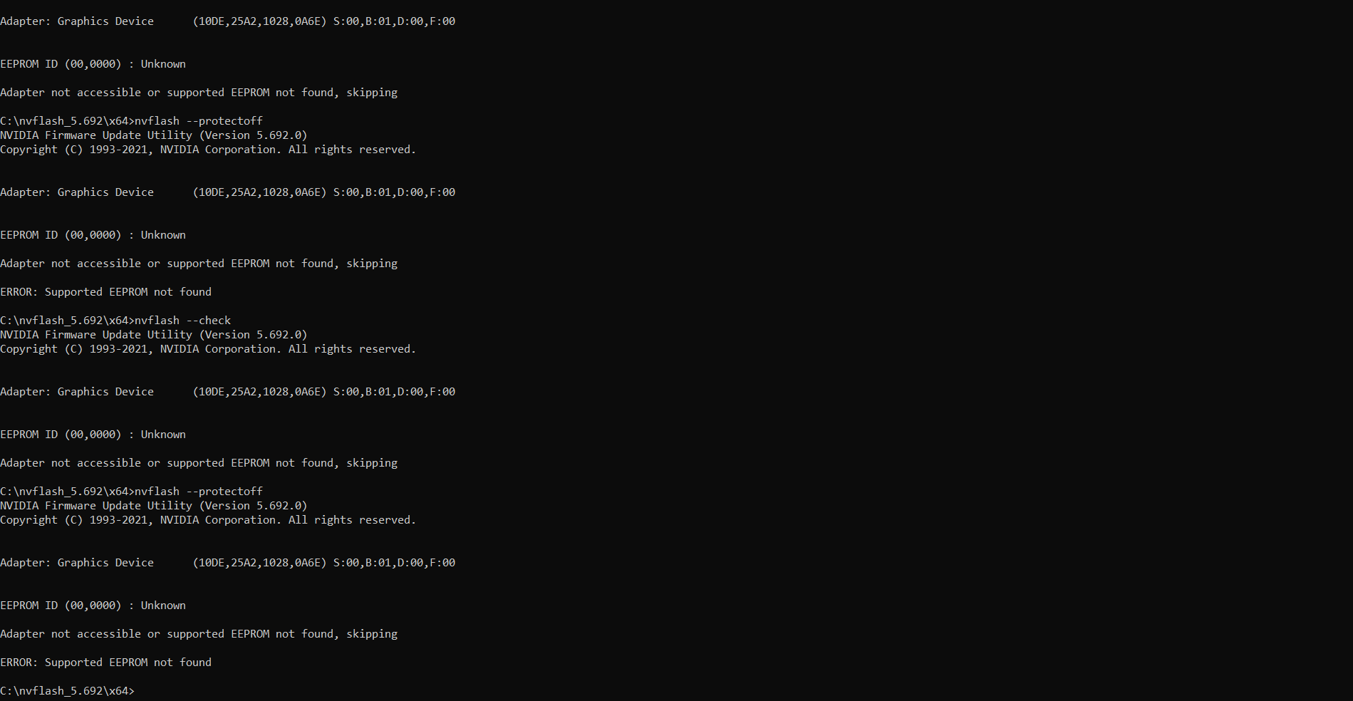 The dell g15 5515 service tag 64TXVM3 turned on and no image appeared. I reprogrammed the wrong BIOS chip, I ended up doing it on the 25Q16JWSIQ VBIOS chip. After realizing the error, I reprogrammed the correct chip and burned the ROM of the GPU taken from TECHUP (https://www.techpowerup.com/vgabios/...le-4096-210618) on 25Q16JWSIQ. When starting, the notebook turned on normally and showed an image, but the GPU shows error 43 in Windows. I uninstalled the drivers via DDU and installed them again, without success. I used NVFlash, the GPU is recognized, but the EEPROM is not recognized (as shown in the attached image).