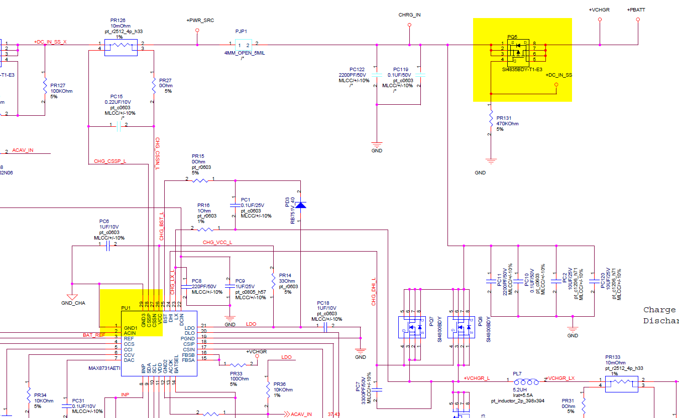 What are the topside markings of the charger IC @ PU1? We want to confirm if the posted schematic and your board are similar.