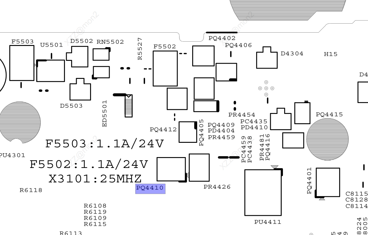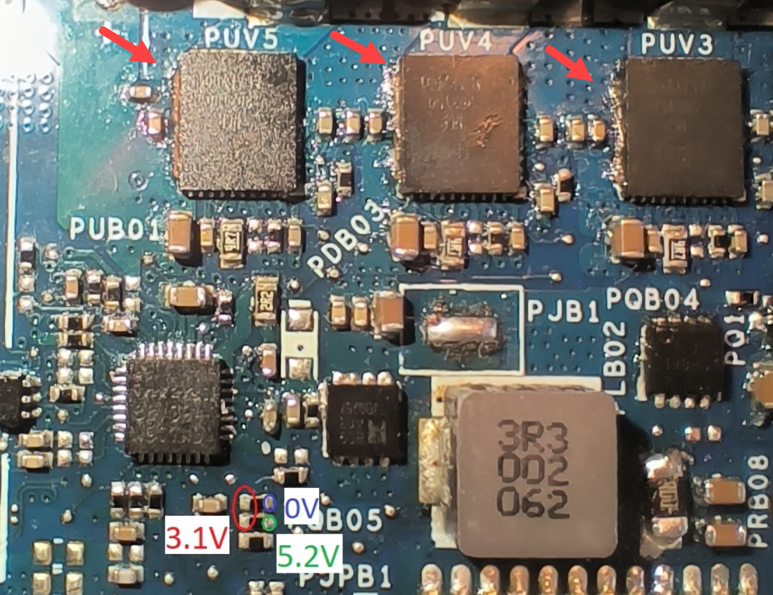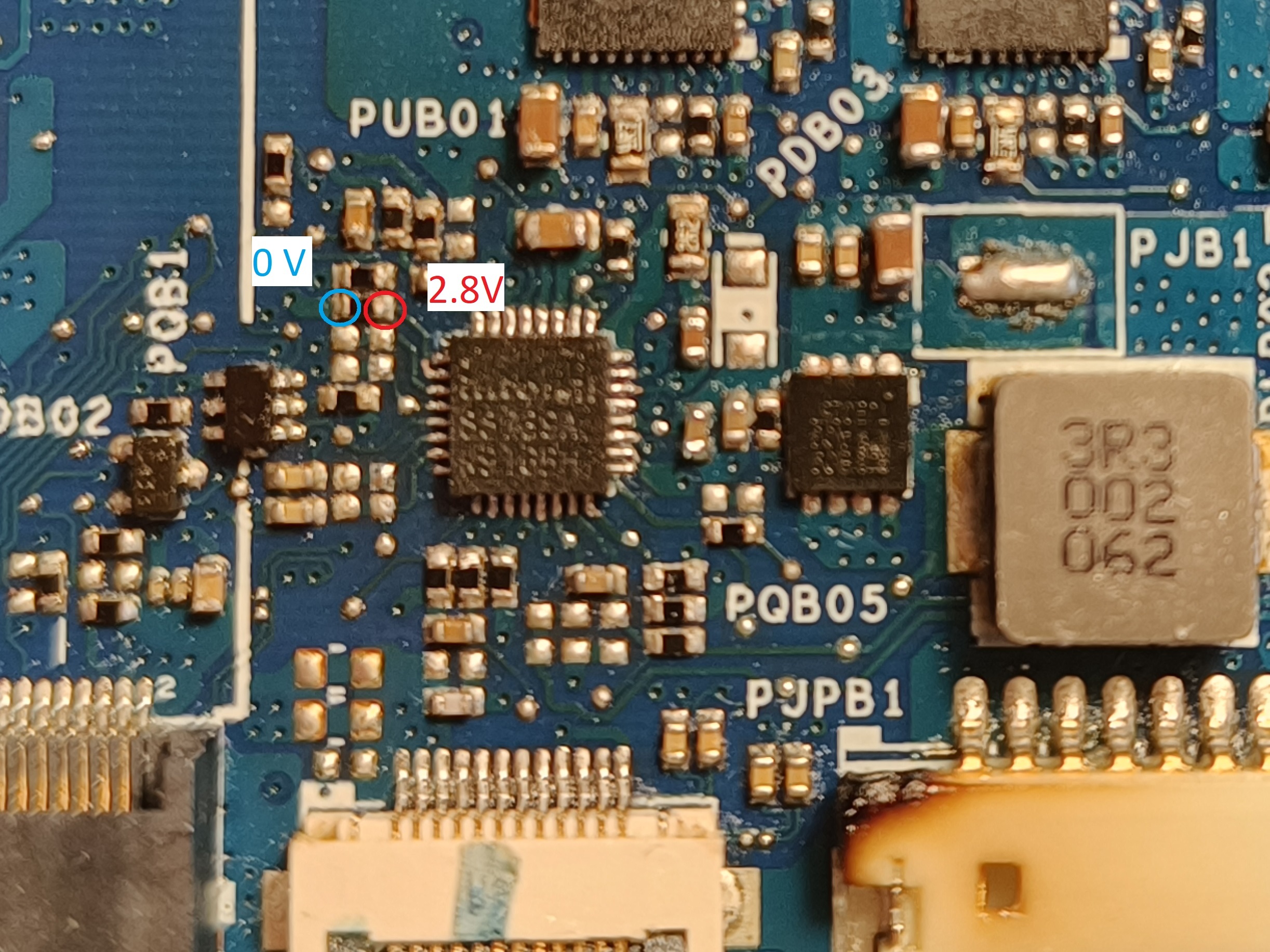 How can I find those mosfets and resistors on the board?It is a bit low but may be ok. This same voltage is used to enable / disable the mosfet @ PQ4410 using the gate pin linked to a resistor based voltage divider.