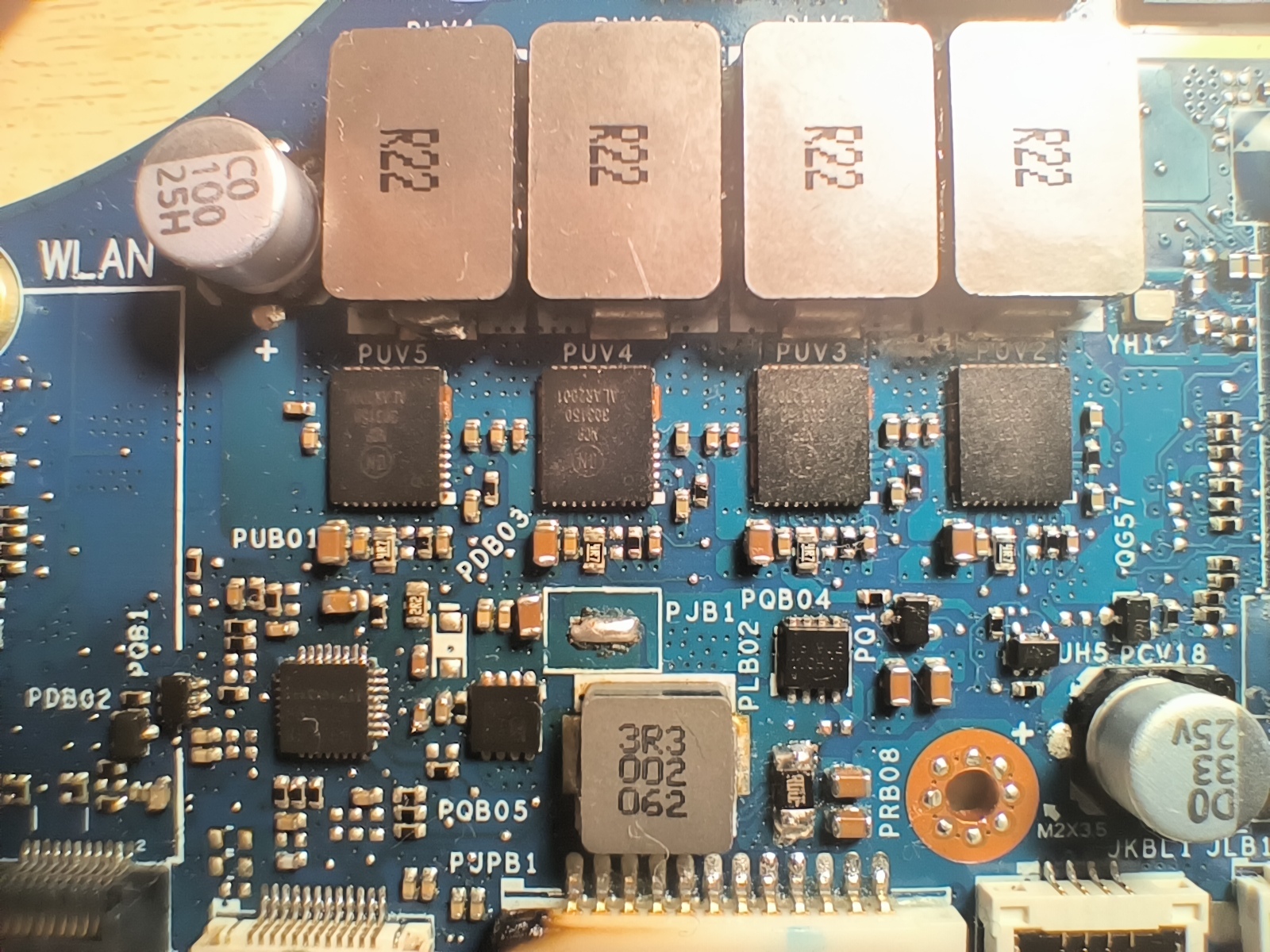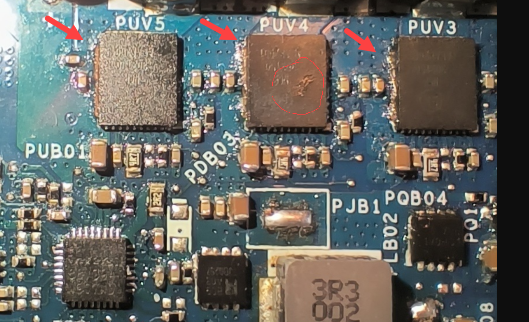 Share again the full topside markings of PUB01. Often this part is the charger IC. From this detail we can find a datasheet and locate the ACOK pin then trace that signal further. On the ACOK pin will be a pull up resistor. We need to hunt for where this resistor travels to locate the power rail that may be defective.