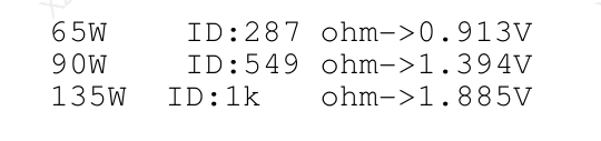 What is the voltage to ground of ADP_ID? This analog voltage defines the power rating of the power adapter. If this voltage is not matching the schematic values, then the adapter will be considered to be not suitable to power the board.