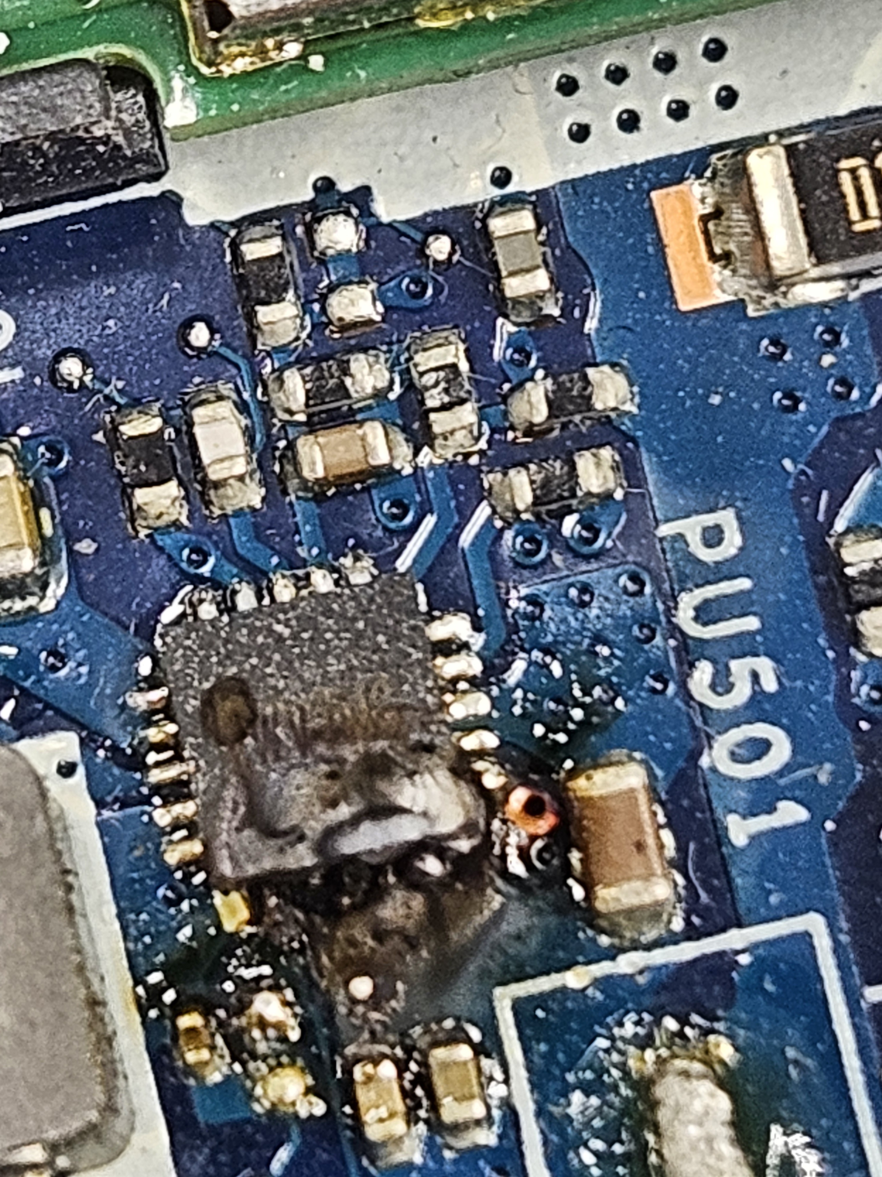 This Yoga 720-15IKB (board LA-E552P) has a burned PU501 IC. As there is no schematic or board view, I am guessing that it is some kind of step-down converter for some rail, maybe 3.3v? I can not read the markings to find a replacement.