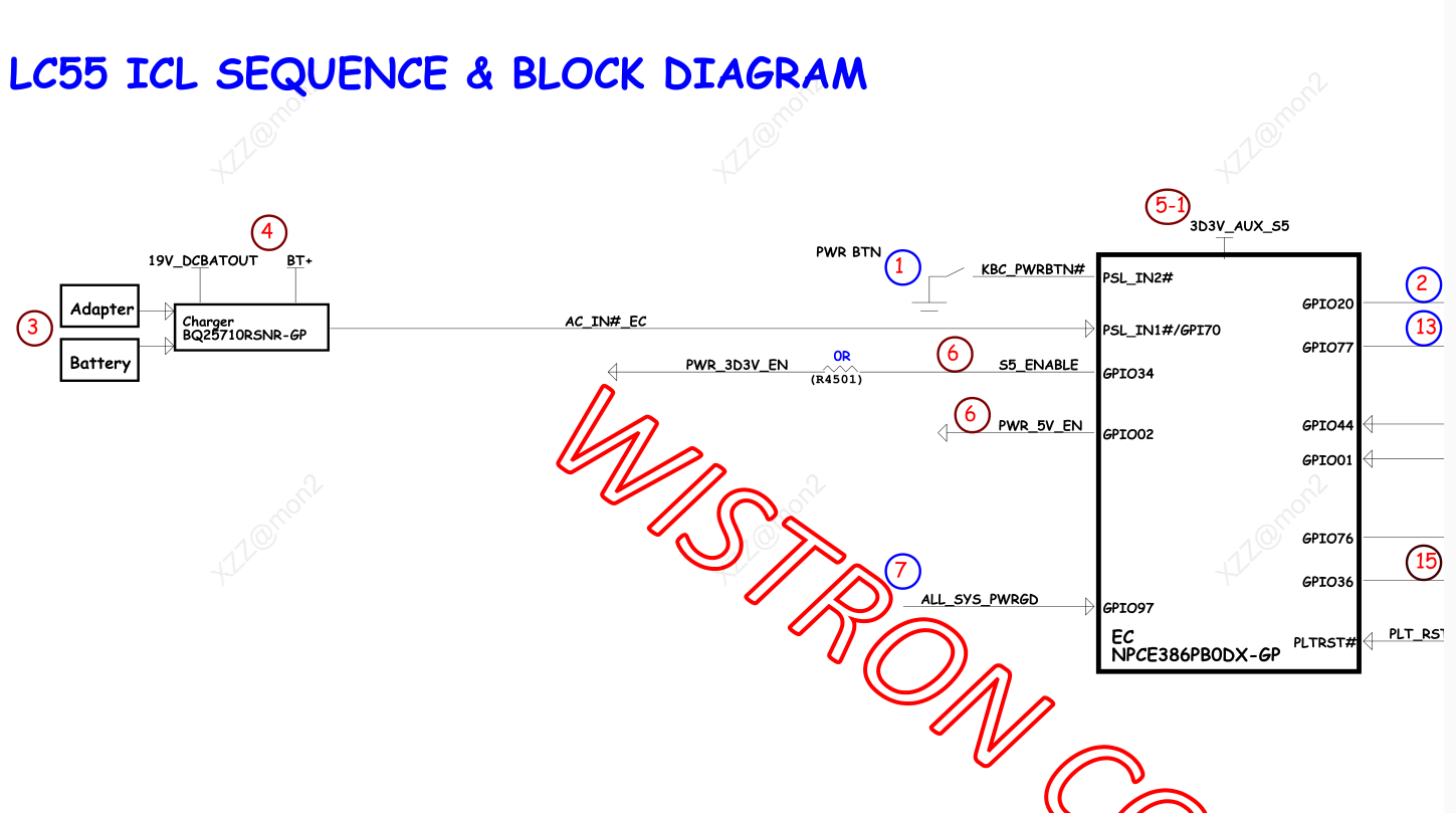 Dear precious friends., I am working on a Lenovo Flex 5 15IIL05 (Motherboard LC55-15C 19792-1 448.0K105.0011). The problem with it, does not turn on at all. I see the battery charging LED but no response from the power button. Output coils 3.3V & 5v are perfect. LDO 3V is also present, I measured this on the power button. The on/off button is working perfectly. I re-programmed with new bin files & the status is still the same. I do not see any abnormal voltage & any Shorts or any kind of liquid spill. The MB is clean. I am using this schematics Lenovo Flex 5-14IIL05 19792-1, seems to be the same. Can anyone help me in with this repairs thanks in advance.