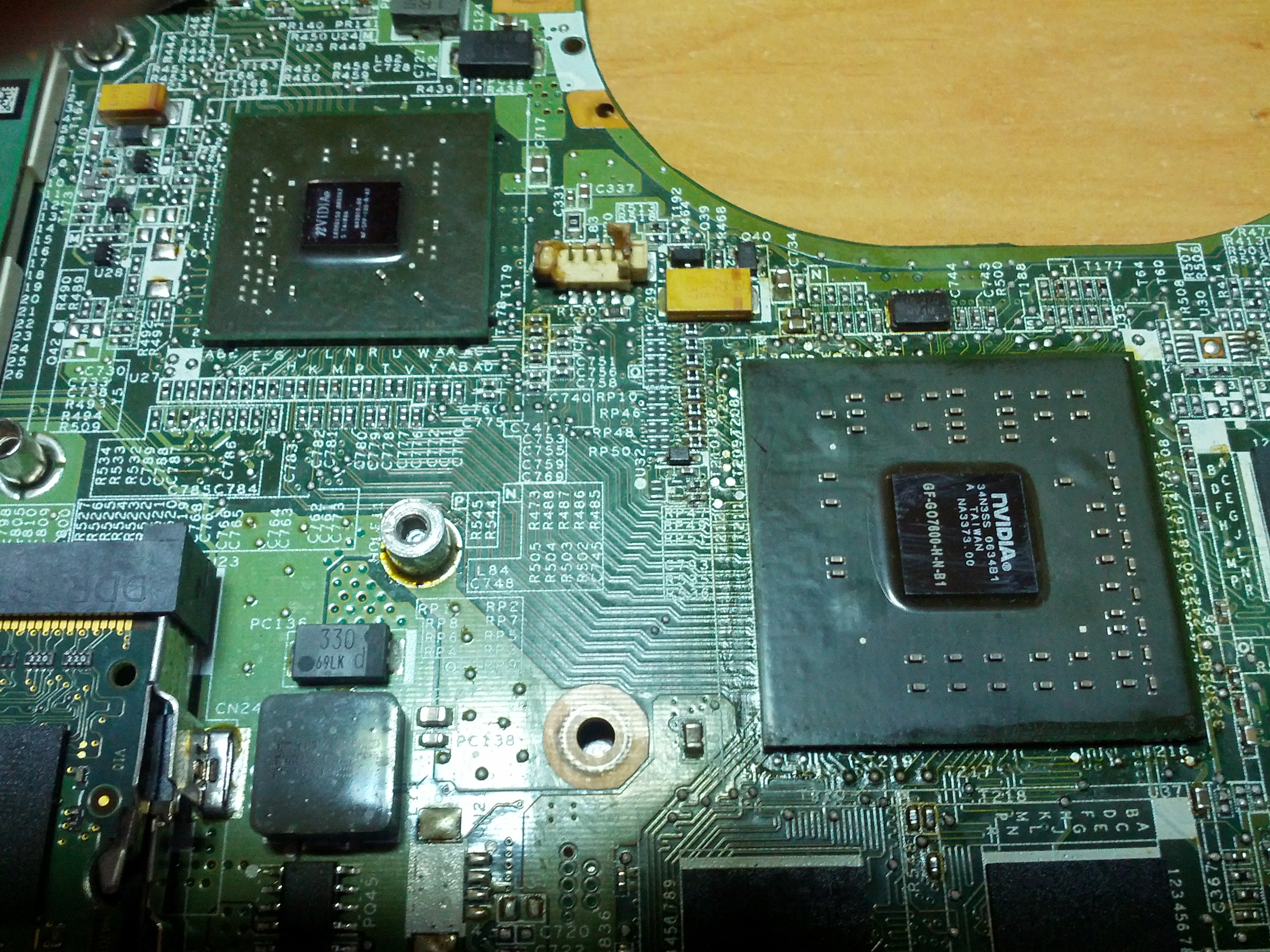 Speaking of popcorn, I did popcorn the chip on a GeForce 7900 GS. Originally it was showing artifacts. But now it works fine (though I haven't really used it at all since I reflowed it, except to test it briefly). I think I got lucky. The popcorn was in an area of a big ground plane on the chip.Comment