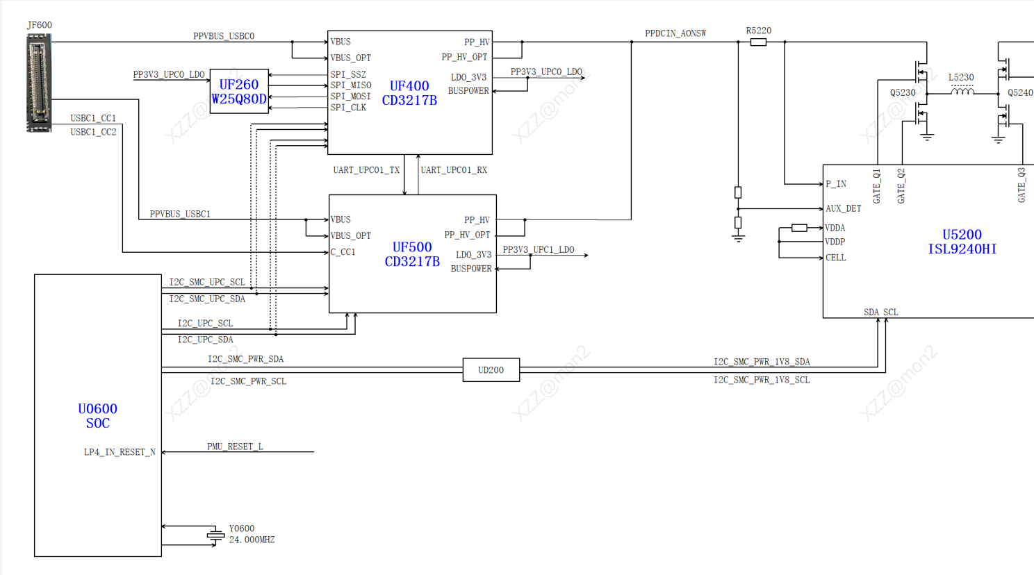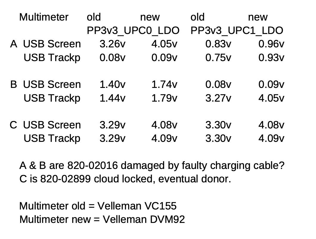 Initially, I suspected a faulty CD3217 on that port, especially since I noticed signs of previous liquid damage near the JF600 USB connector. I replaced the CD3217 with an UF400 (from an A2442 donor board from the same location). According to the supplier, this should be a compatible version, but the behavior... -