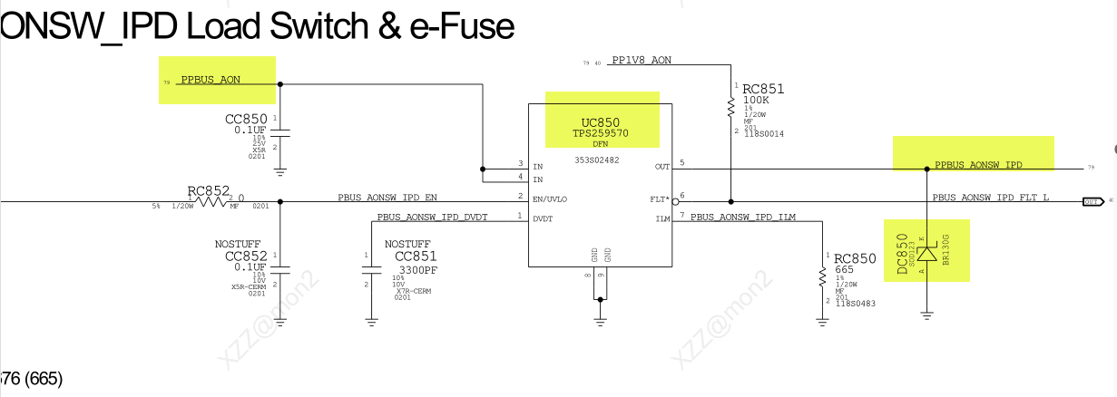 PPBUS_AONSW_IPD = 4.62Ω at LT400 (1). Could not find spot on DC850 to put pin.