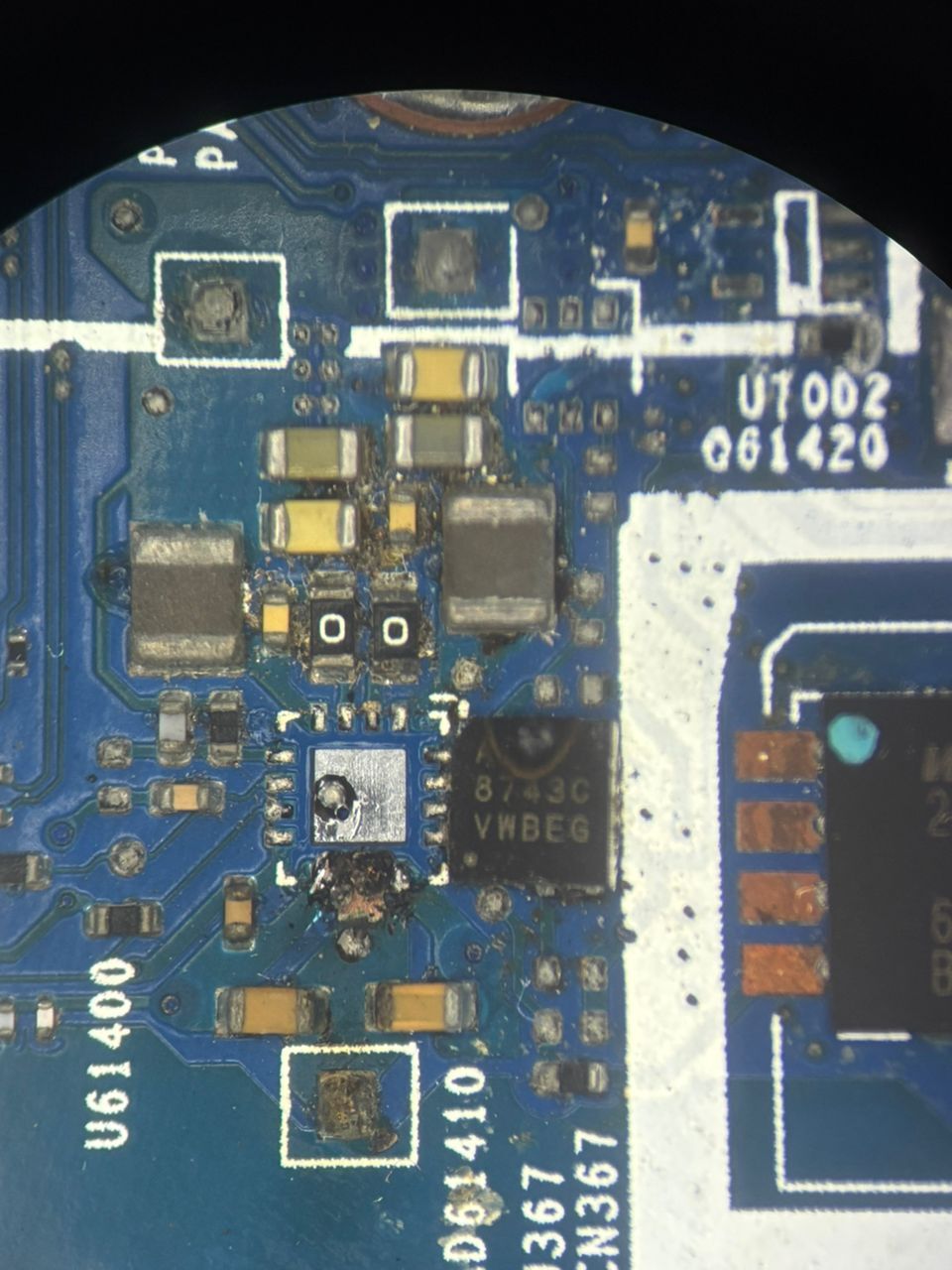 ic burn...please help identify...this laptop can on but only without cmos and battery....and another problem is when laptop on, i can hold power button to turn off the laptop but when press power button again it wont turn on...need to disconnect charger and plugged in again to turn it on