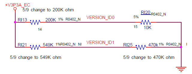 Compare the values of RI13, RI20, RI21, RI25 on both old and new boards, you may need to modify the new board to match