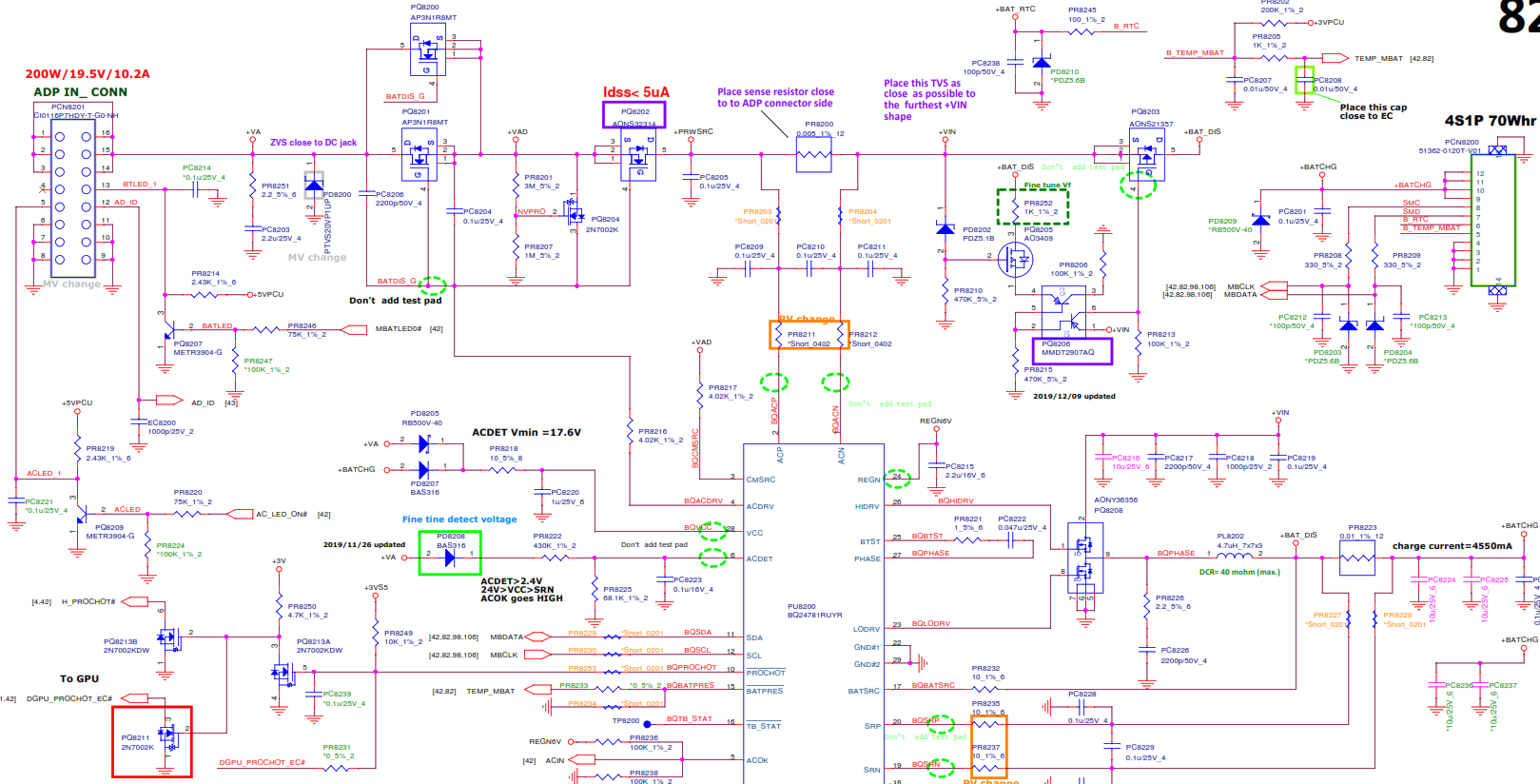 So far, I've checked the three input MOSFETs, and all three seem to be in perfect condition. The charge IC is a BQ24781. The voltages I've checked are: