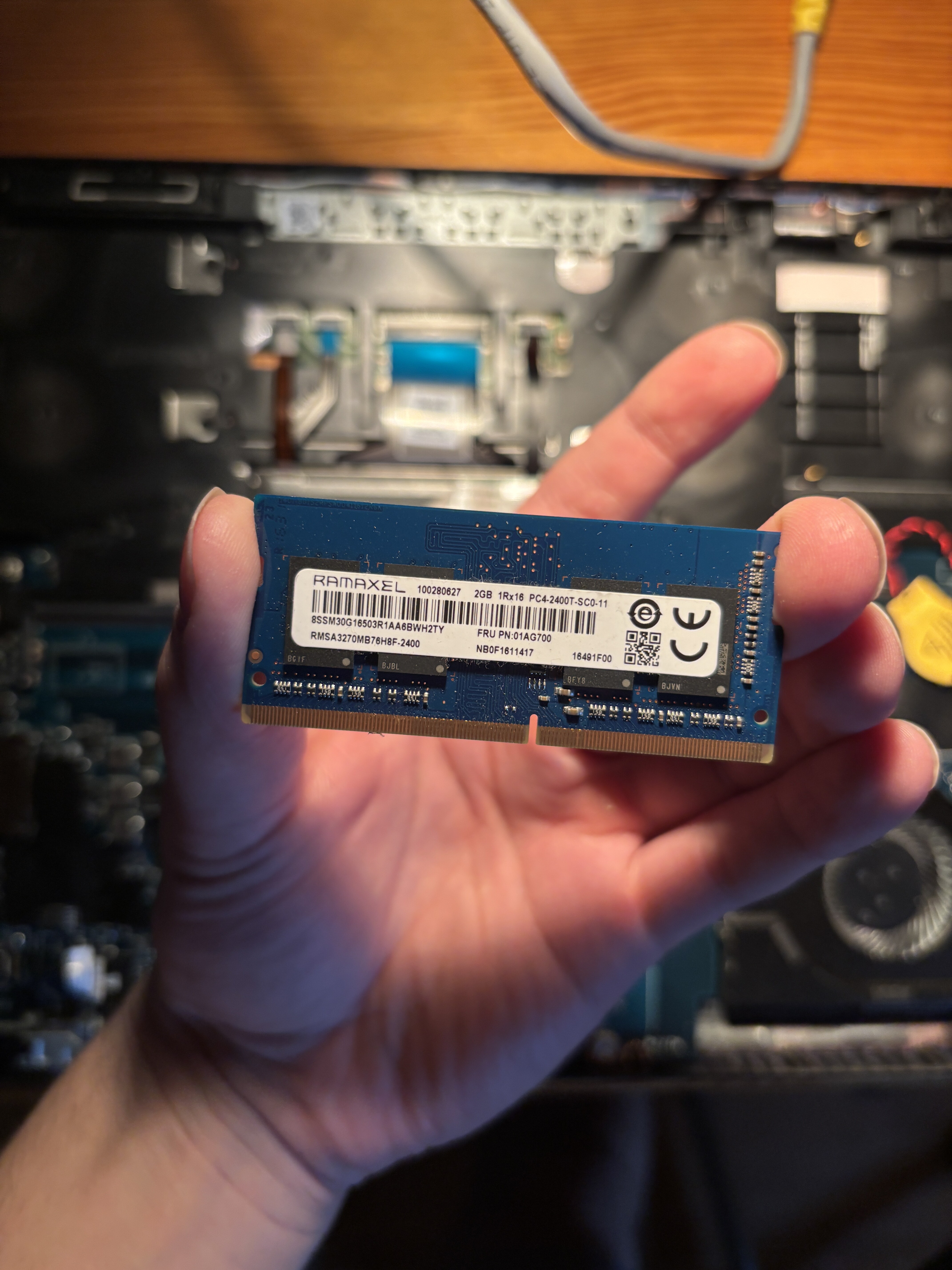I got a bare Dell Lattitude 5590 with missing battery, RAM, RTC battery and Storage, I wanted to put some components in it and use it as my home laptop. After adding a FRU 2GB DDR4 2400 SoDIMM RamaxelRAMI've tried booting Linux Mint from USB, I got an error while trying to boot it. I tried reseating the stick, different slot, didn't help.