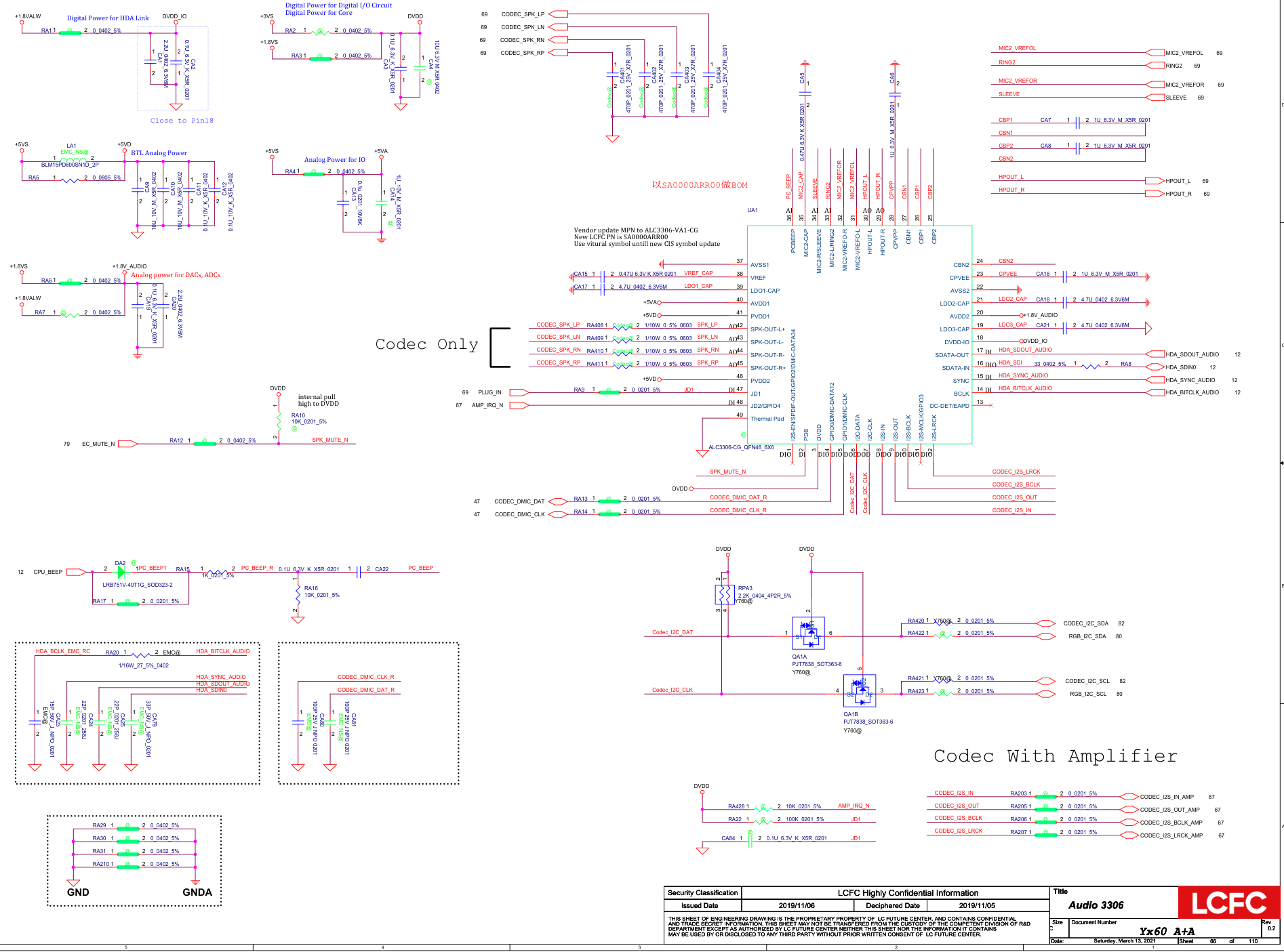 If anyone has a schematic for the laptop, or any other schematic utilizing the Realtek ALC3306 it might help with pinpointing the issue,