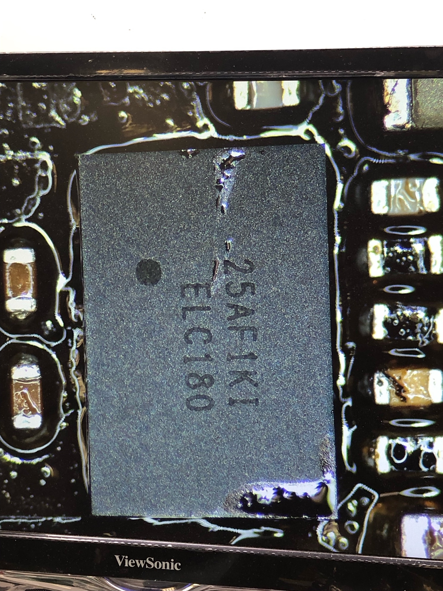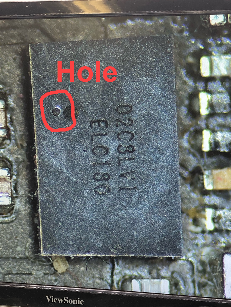 d) Next, is the painful removal of the logic board process. Once the board was dismantled from the (abused) enclosure - observed the regulator for this SSD as follows: