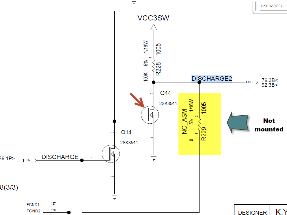 my Q61 (2SK3541) pin 1 has 0.47ohms to gnd and its connected DISCHARGE2
