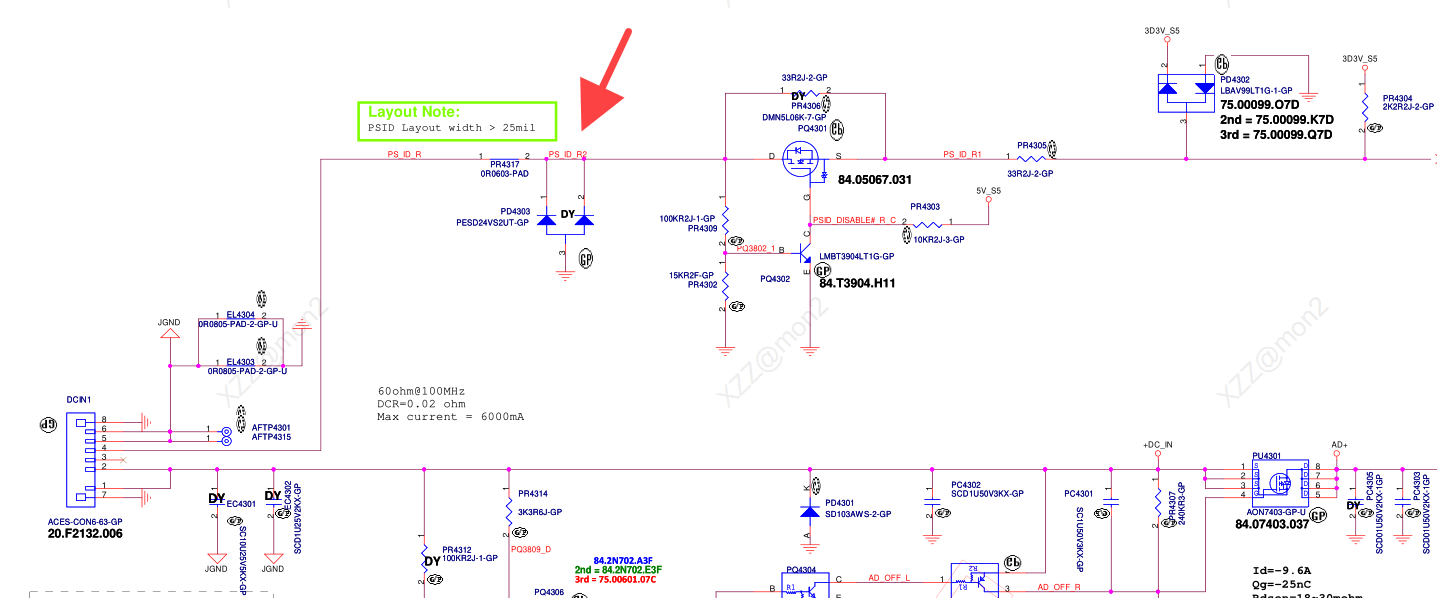 I have been working on this laptop mentioned in the title, it initially had a blown PQ4410 mosfet. After I replaced it and repaired the damaged PCB the thing started working again, but there is still another problem. The laptop won't recognize genuine battery and charger. I have 3.3v KBC PIN36 PS_ID and this is pretty much where my knowledge ends.
