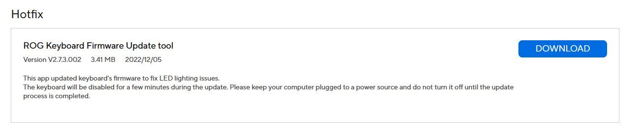 Example: G513IH Hotfix, ROG Keyboard Firmware Update tool - https://www.asus.com/me-en/supporton...desk_download/