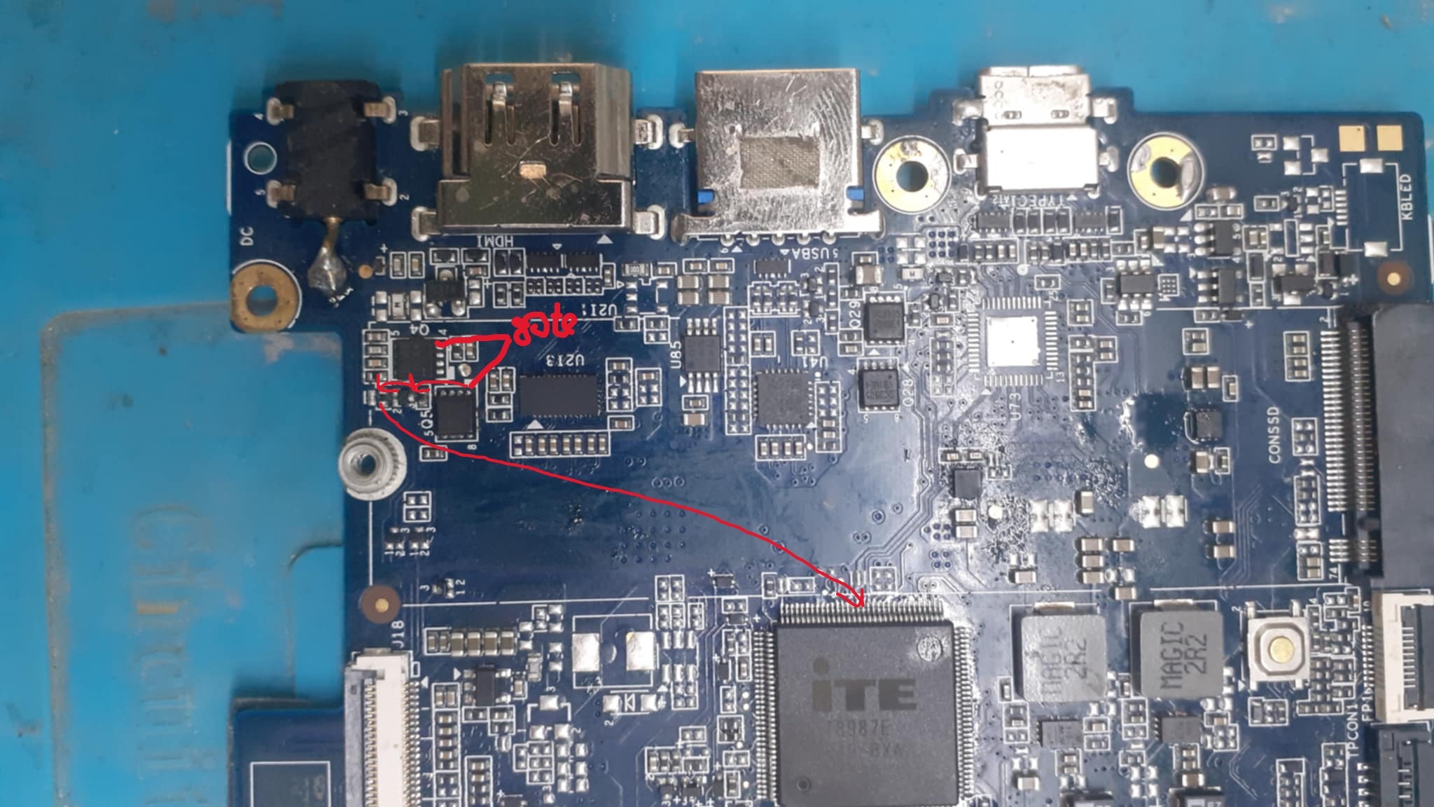 the kbc is faulty because 3.3 vcc kbc is shorted if i inject 1v the kbc heat quickly .