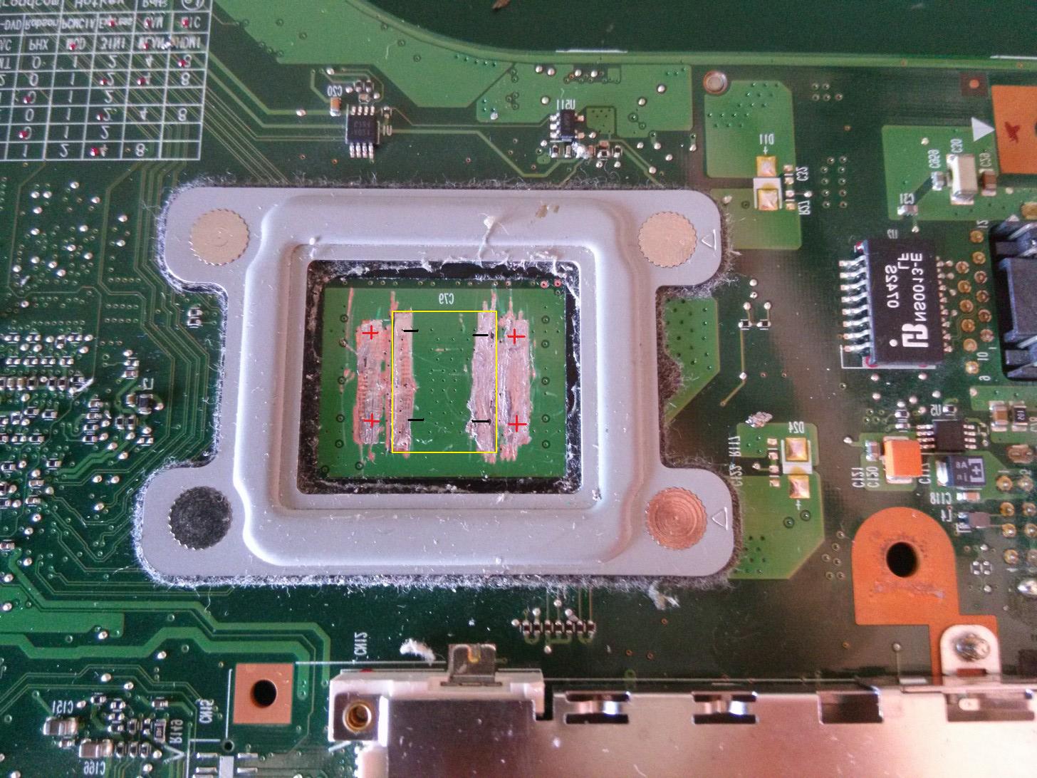 yes, thats right, if he has not gouged down to the next layer, It should be ok with some repair to the + print that has been cut through. It would be good practice before risking the next laptop repair that was mentioned.