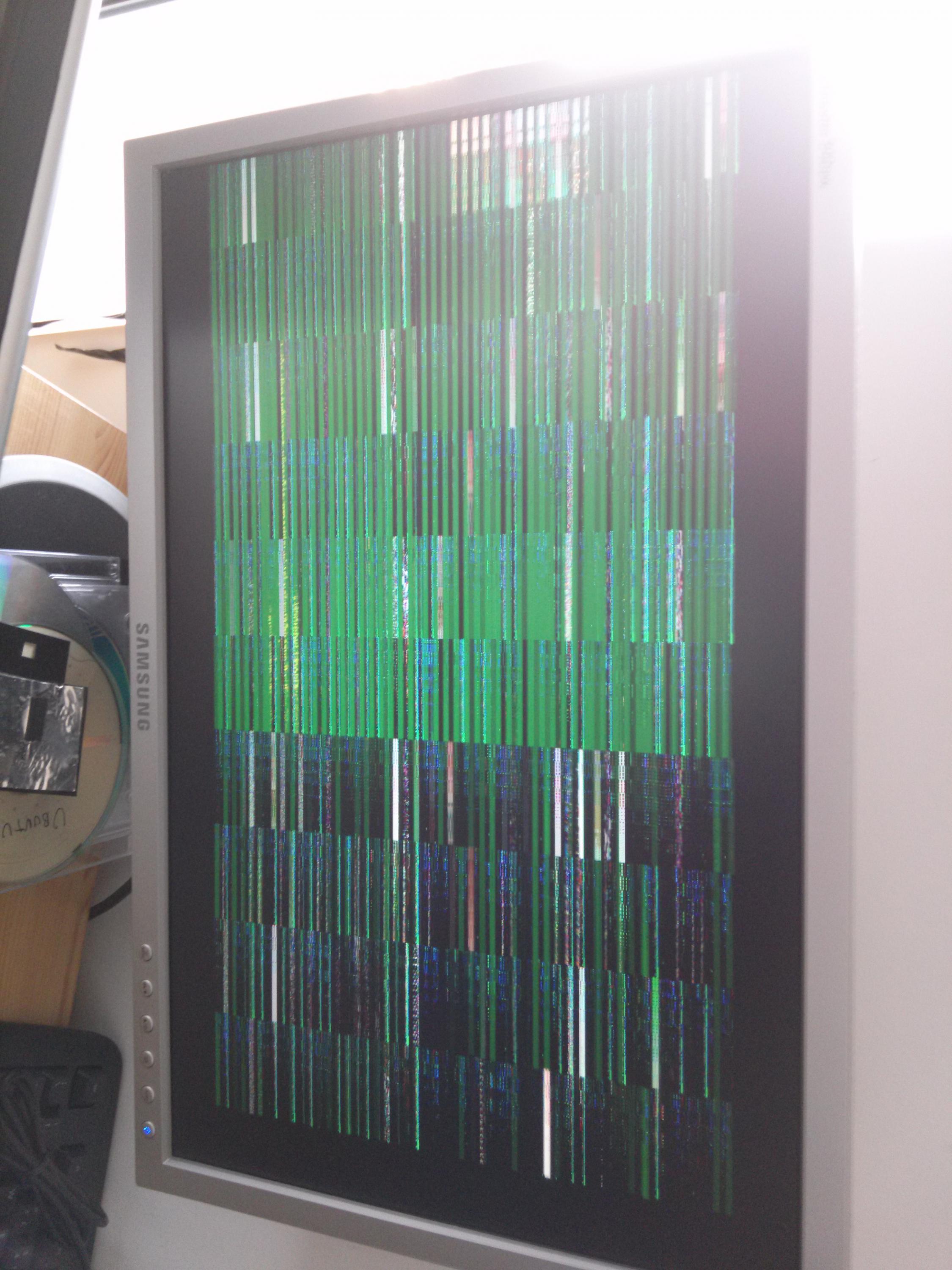 The laptop boots normally with no graphics issues till entering windows. In bios etc image is OK. Third photo is when connected to external monitor.