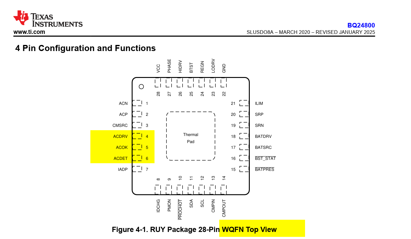 I checked the voltages as you suggested. ACDRV is around 25V, REGN is about 6V, and ACDET is above 2.4V, so the readings look fine. However, the battery still does not charge with the DC adapter. Do you have any idea what else I should check?See attached. Proceed only if your meter leads are fine tipped. Otherwise, the short circuit of the pins can be lethal to the board.