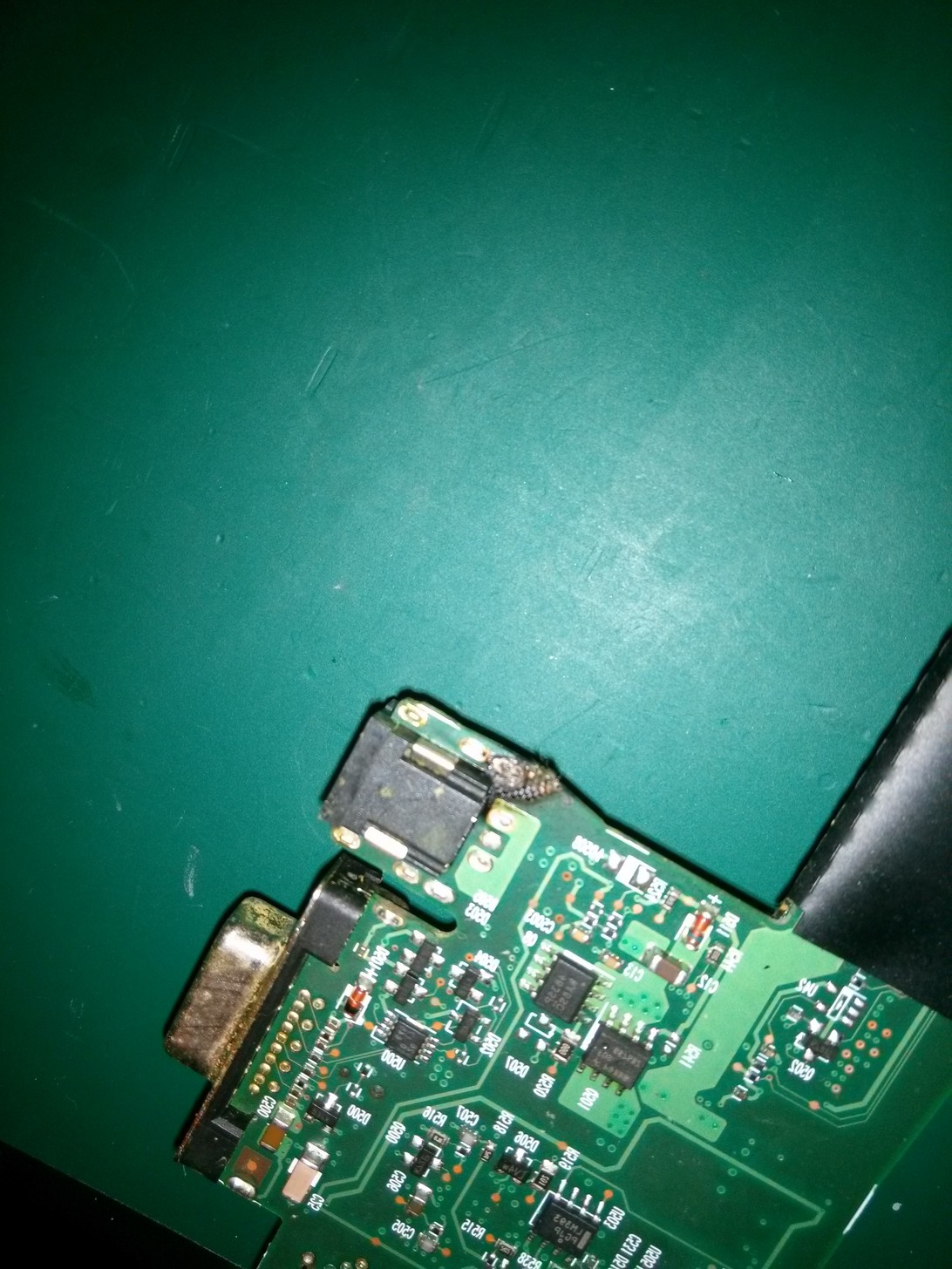 mather in fact i dont , since machine left for client , but imagine that a board have several layers , bottom top and 3 to 6 layer on the midle of baord , they all have very small distances between each outher , around 0.1mm to 0.25mm , what i did is , started removing the fiber part on the top ( in my case first i removed major part of VCC layer on top and botton for i can room to work the layers , after having a good range to work with , started removing with the dremel the fiber around the hole , removed until reach near 2mm of the top and bottom VCC , when i start seeing the inner layer above the top one , start consuming its cooper until there is not cooper to see frmo that layer , and removed a bit on the sides as well (because the smokes comes frmo layer touching on each outher generating shorts) so you must do things like the ROCK mines , let me chek a picture for you can get the point of my idea(well its a rudimentar pictures but yuo can get a idea how i solved my problem after each layer you work , with the multimeter , chek with continuity between ground and VCC , if you GOT value 1 , then it must be 100 without short , now attention , if it dont BEEP , but you have a value like for ex , 655 its not ok yet , you must clean well until you have certain all is good . when you got no longer short , i advise to insert in the hole a good non conductive epoxy glue and let it rest for 3 hours at least , then , chek if you have still places for the DC jack pins , if not , you must make some wire work and thats it