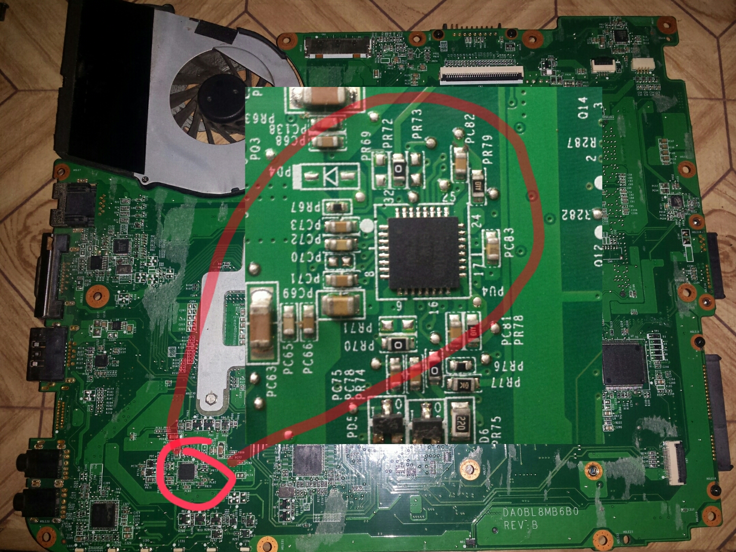 The chip that is highlighted turns very hot as the power supply is plugged in and the led indicators wont lit and wont power when power button is pushed..
