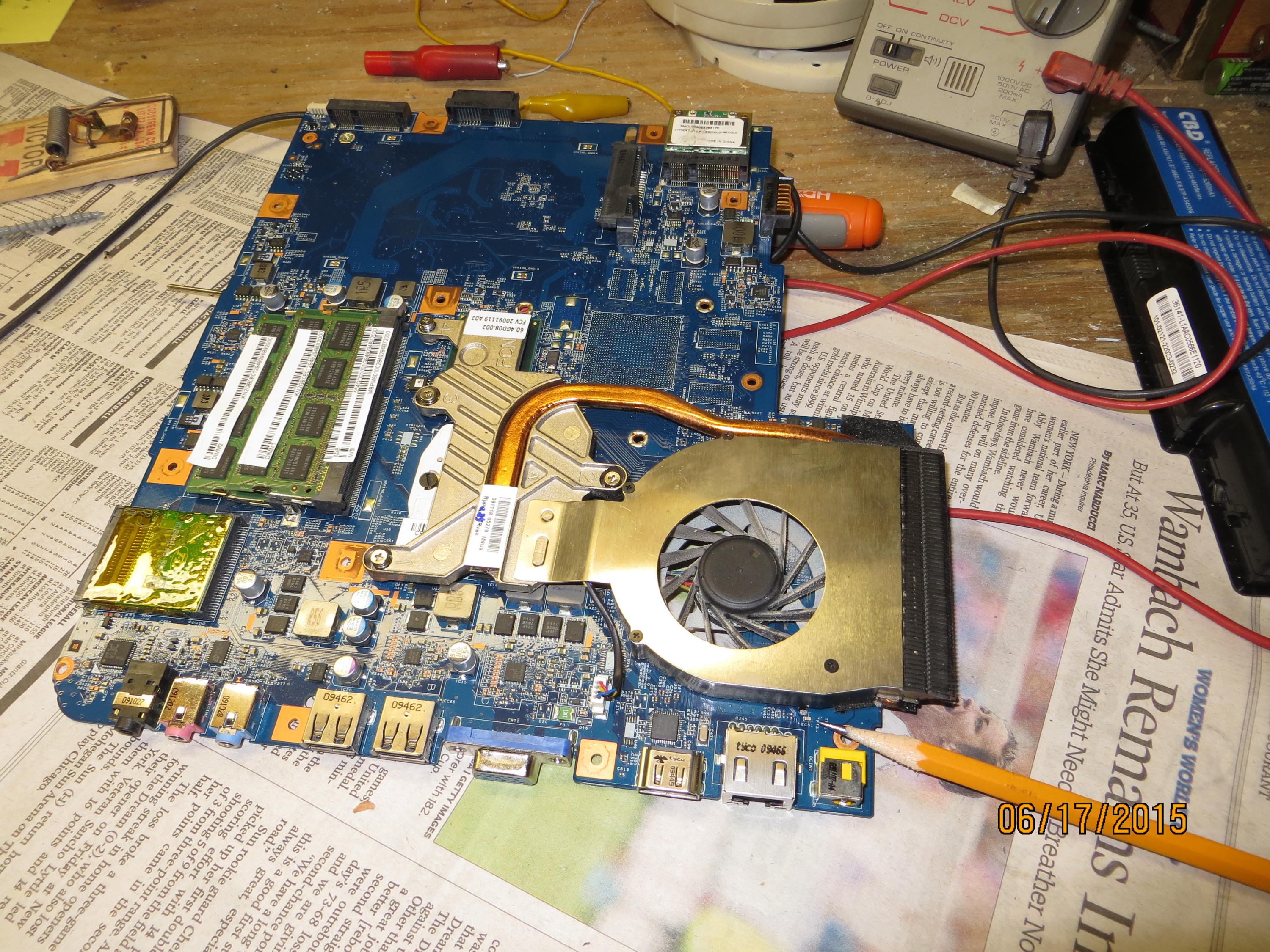 the schematic is suitable for your board? if so, then try check D10, U28,U29 if them shorted. check it with DMM in diode mode without power adapter and batteryLast edited by meritosari; 06-17-2015, 06:02 PM.Comment
