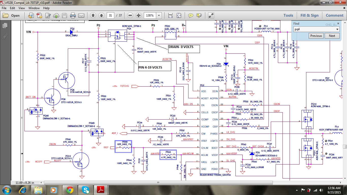 The gate of the p-channel mosfet is high and no voltage measured on drain.