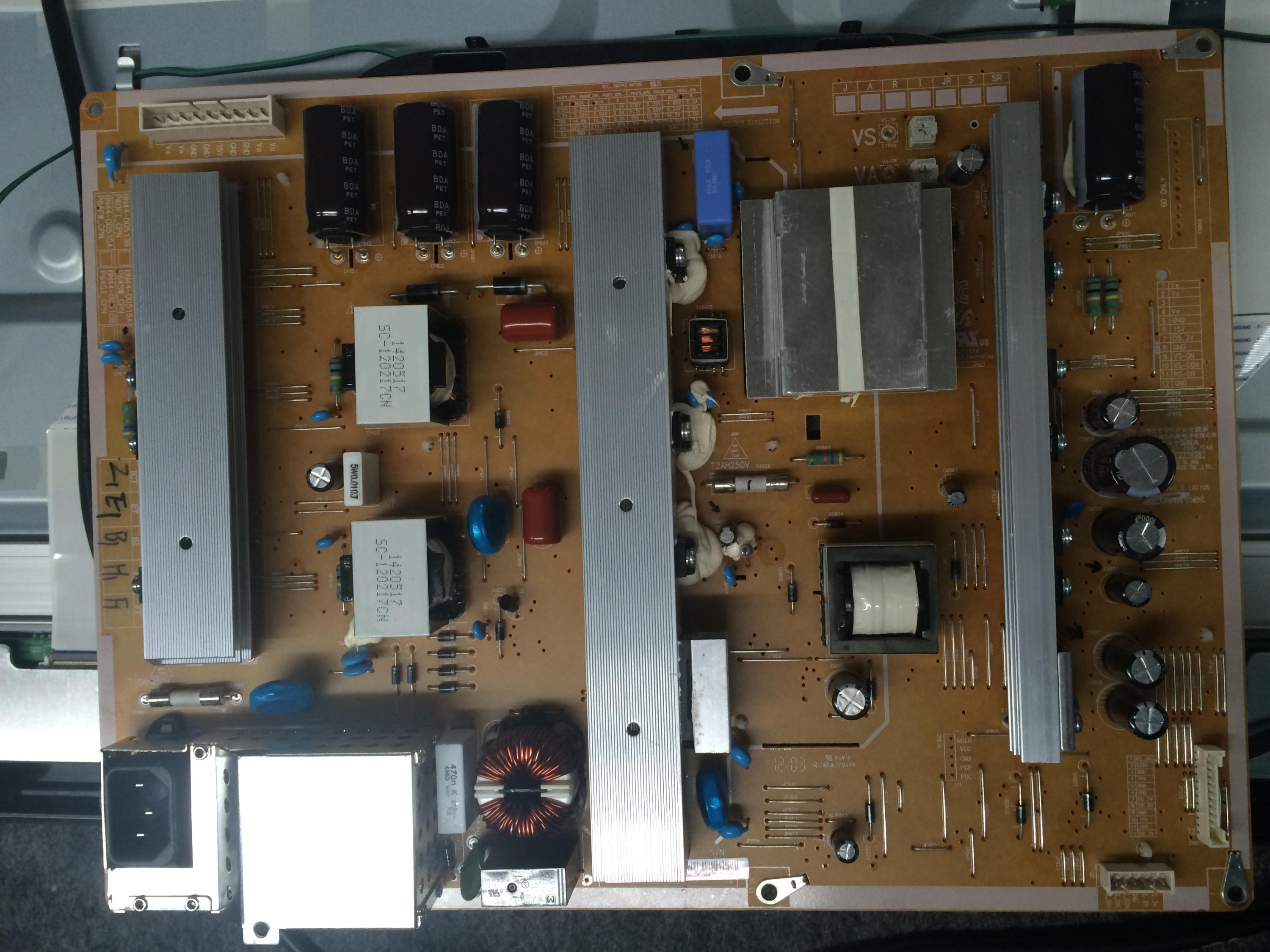 I am working on a Samsung PN64e8000GFXZA that has a burnt power supply. Part # BN44-00516A. I am familiar with the loose solder connections on this board that can cause shorts to some of the mosfets. This paticular board burnt a small section around QS804. I am having trouble finding replacement parts and need some help. Found QS804, QS802, DS810, DS808 shorted and RS833 and RS835 open. Some of the parts a burnt and dont have markings on them anymore. The two transistors are FDPF18N50T but not sure about the other parts.