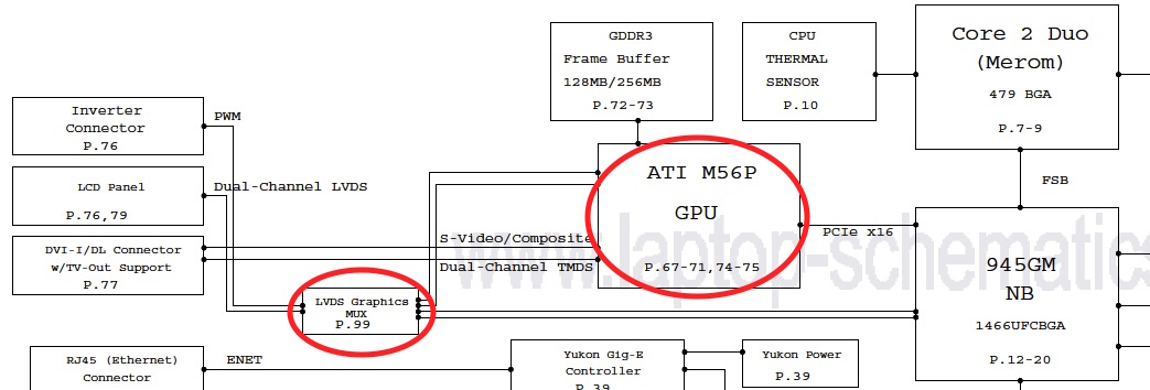 Thanks. Based on your tip, I made some voltage measurements on the PPVCORE_S0_GPU that supplies 1.1 volts to U8400 ATI M56P GPU. I immediately found two problems:
