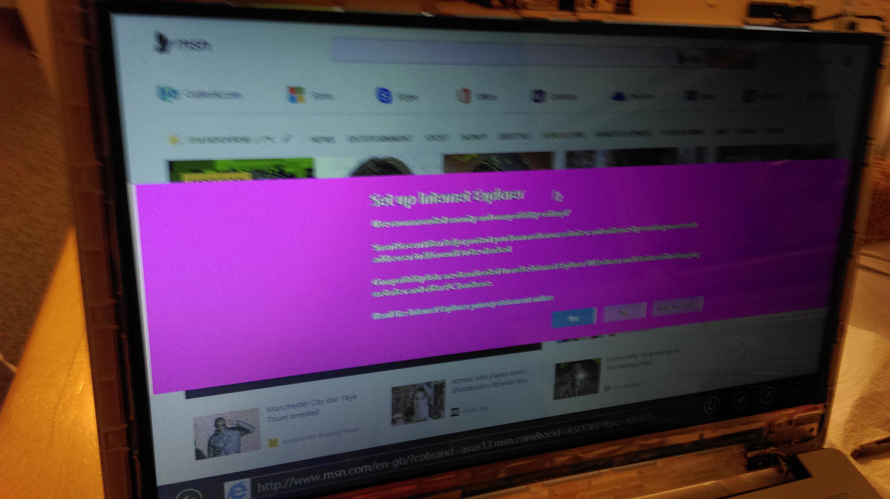 I was given this laptop and told that the screen was displaying incorrectly. When powering up the laptop it was showing a green snowing affect at the Bios screen and then displaying a purple screen at the desktop.