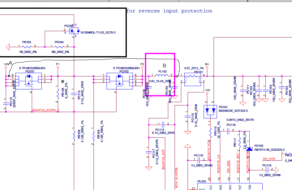 I have also replaced all 3 battery mosfets with no change. The 1st battery mosfet has 20v going in. Pic attached.