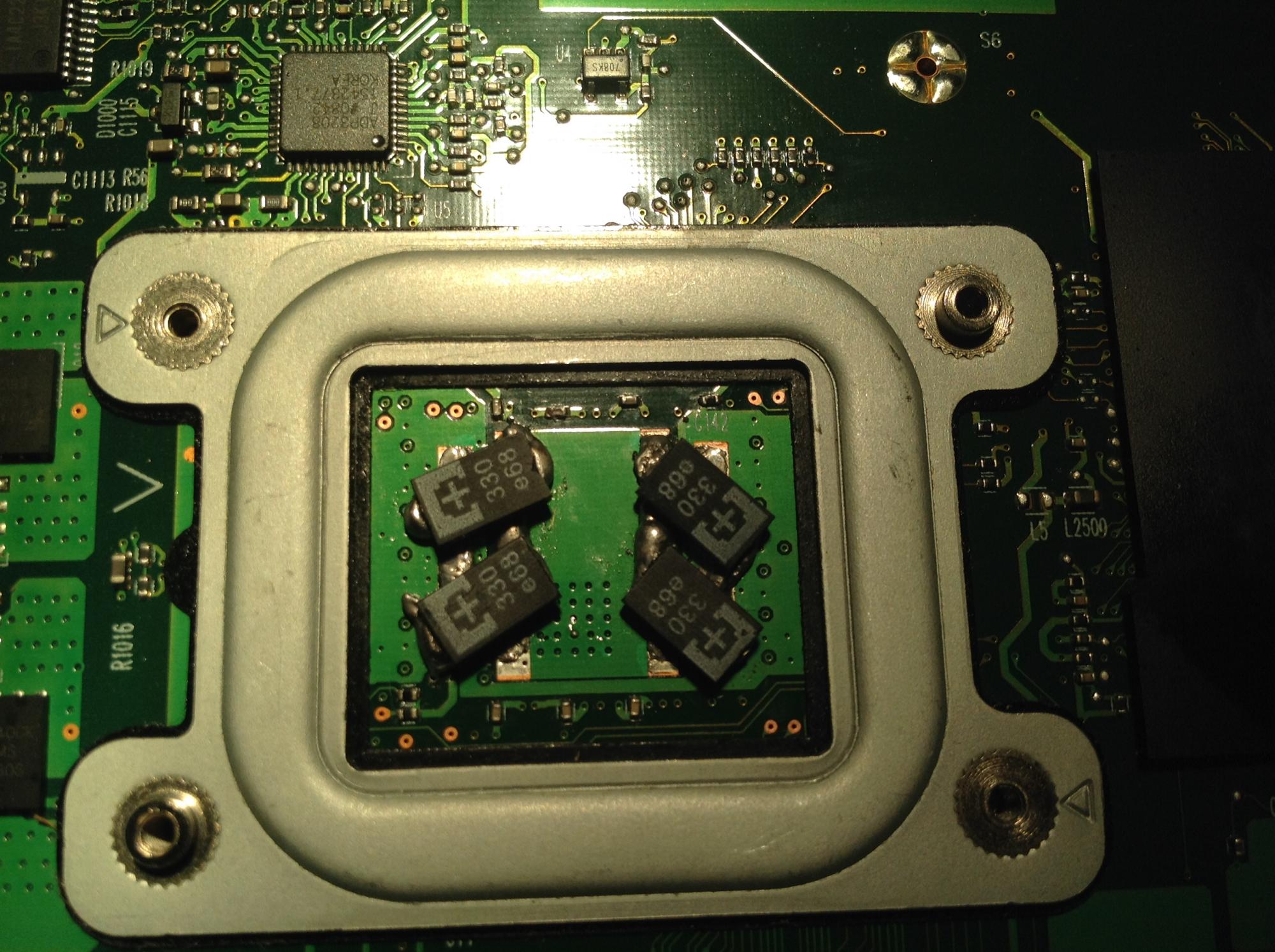 And removed all chips/ things he suggested on video to stop damage to them the replaced - think main processor and graphics chip etc (not 100%) sure what they were but removed and replaced ok .
