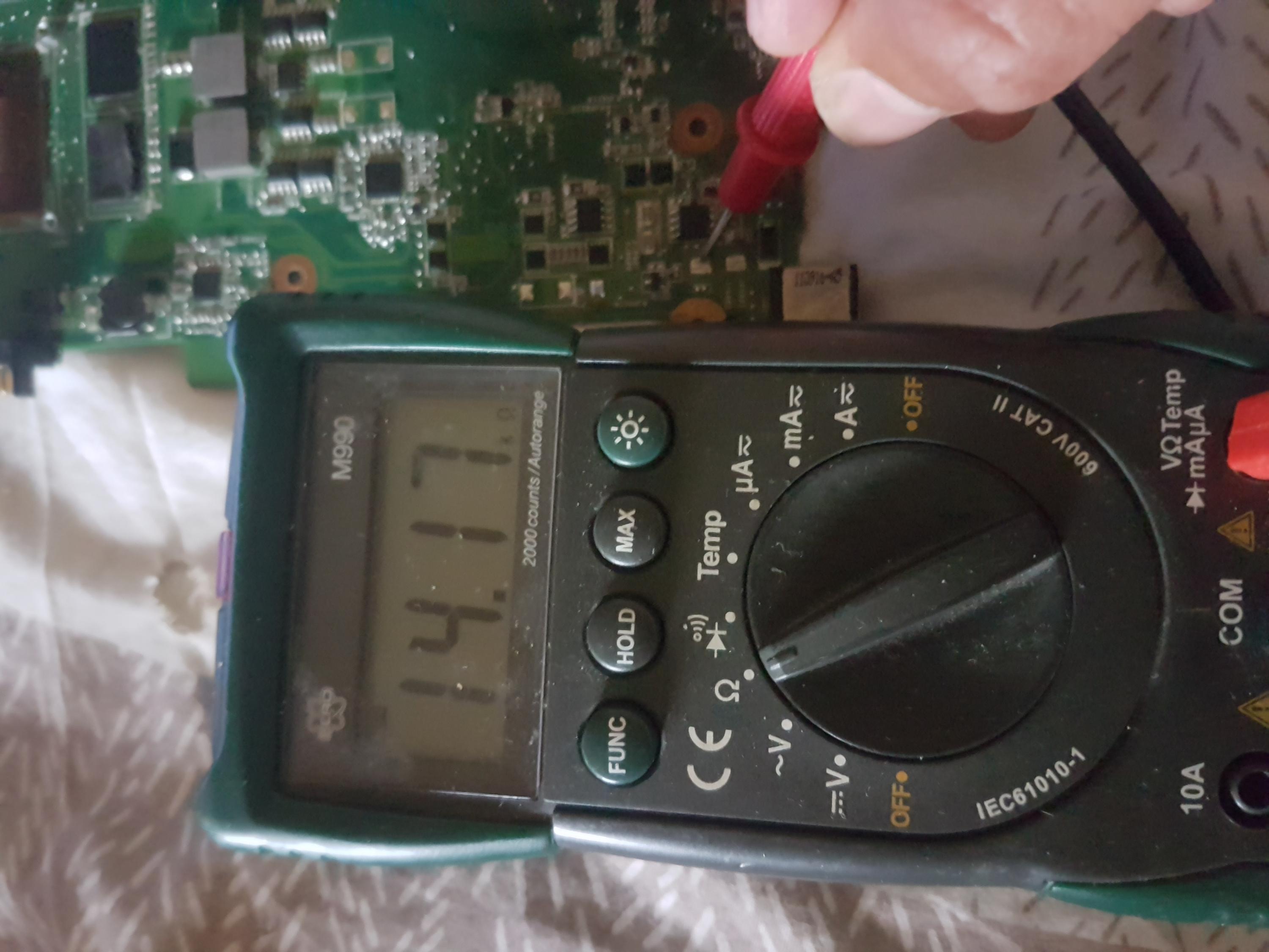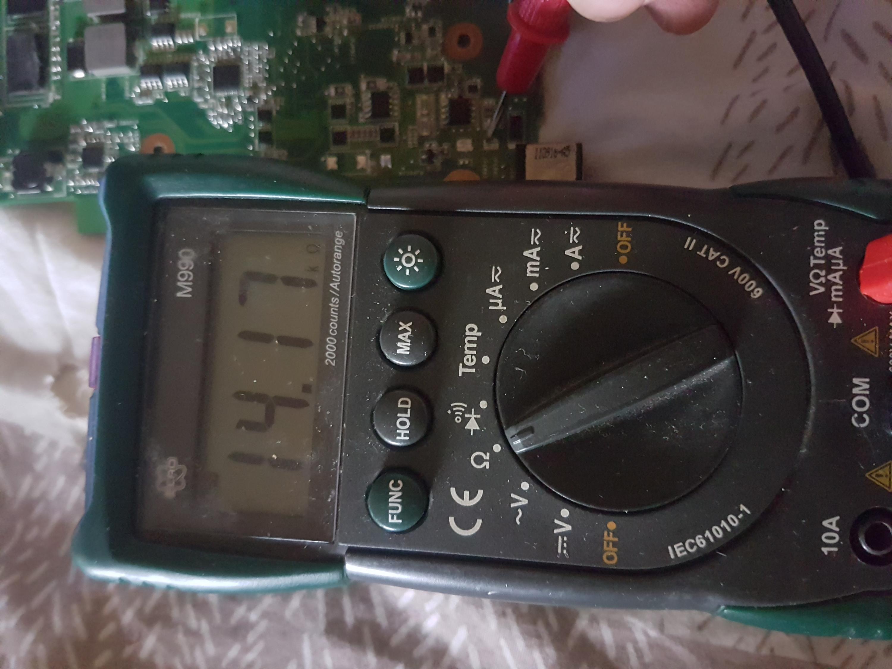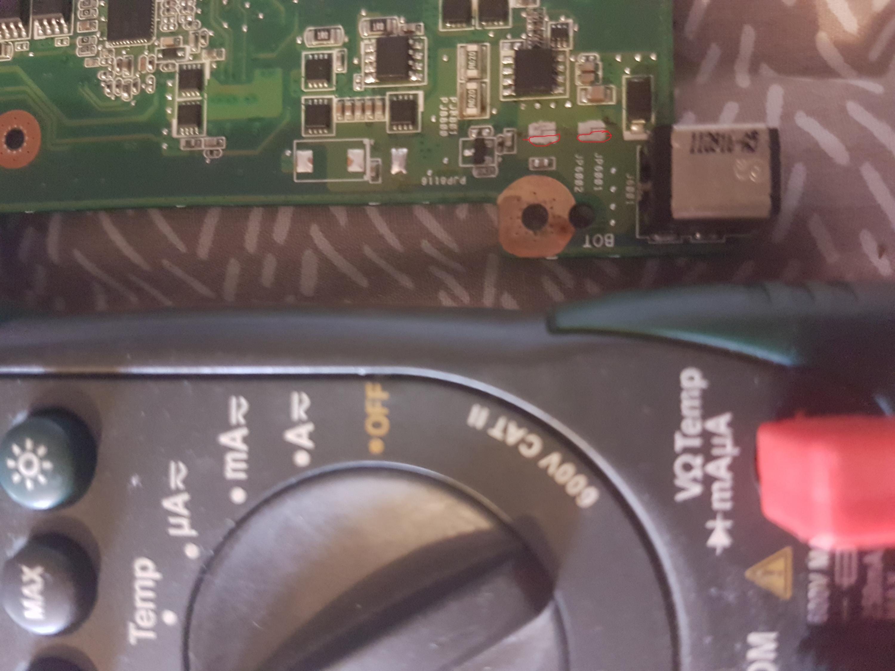 I tested it i marked it for you on the picture... on those 2 pads no value in the other 2 i see some... is that the right setting on the multimeter?