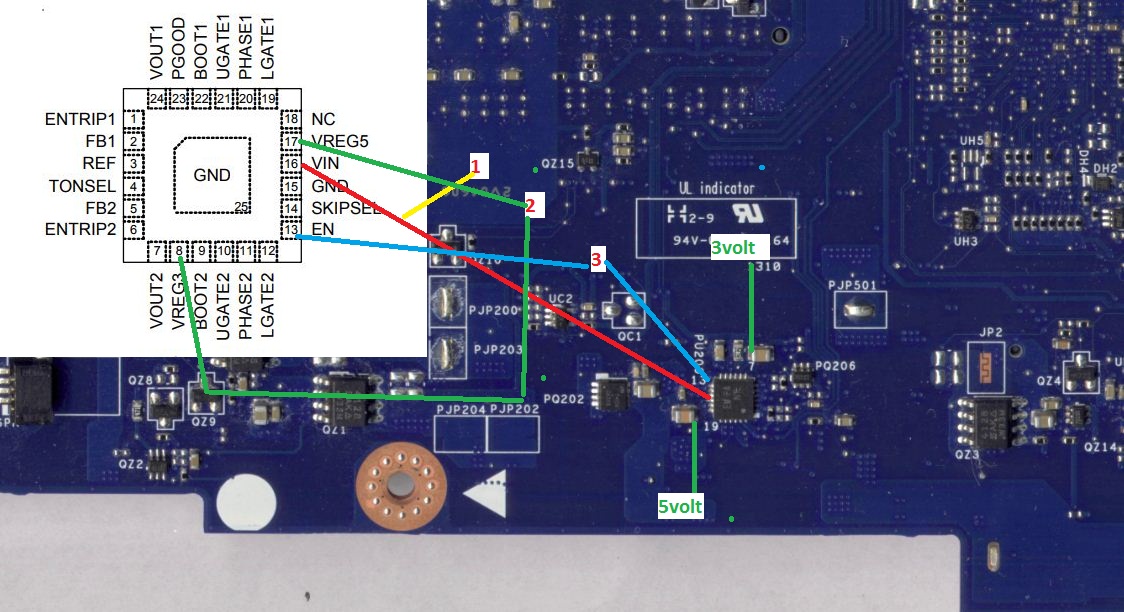Dell 3521 (la-9104p) NO POWER ON, 19V GOOD,