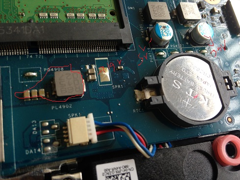 Dell inspiron 5458 AAl10 La-B843P 1.0 laptop working fine now if i put low voltage of cmos 1v but have 5short beeps battery but when new one 3v can turn on but after shut down cannot turn on again need to remove cmos first in order to turn on againComment