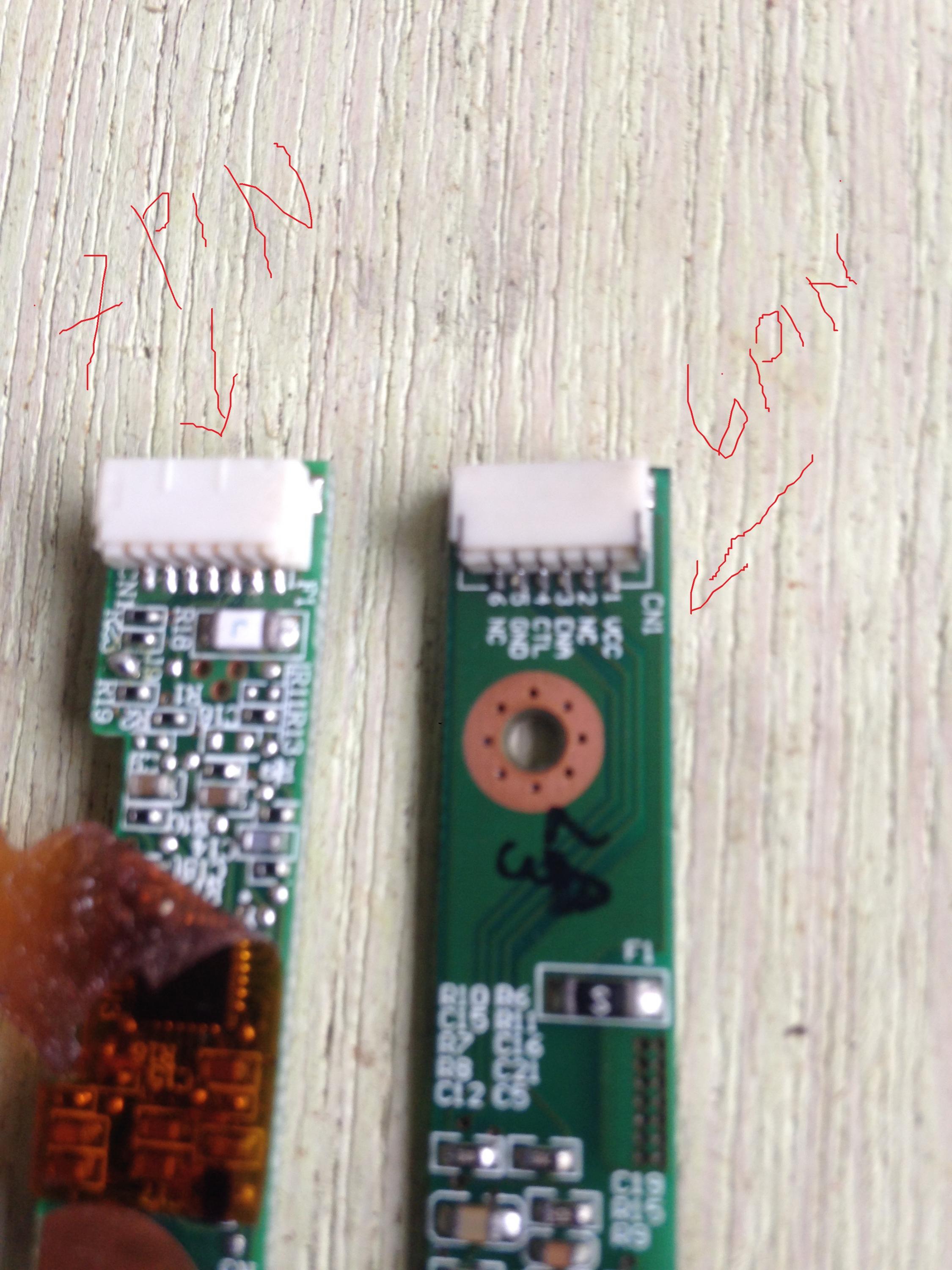 hi everyone i need help on this the ccfl screen inverter in broken on toshiba l505 laptop the inverter has 6pin and i cannot find the same replacement for this i have here available only the same size and coil but the problem is the available has 7pin it is possisble to use this to convert the 7pin to 6pin?please i need help on this please i have attached the image