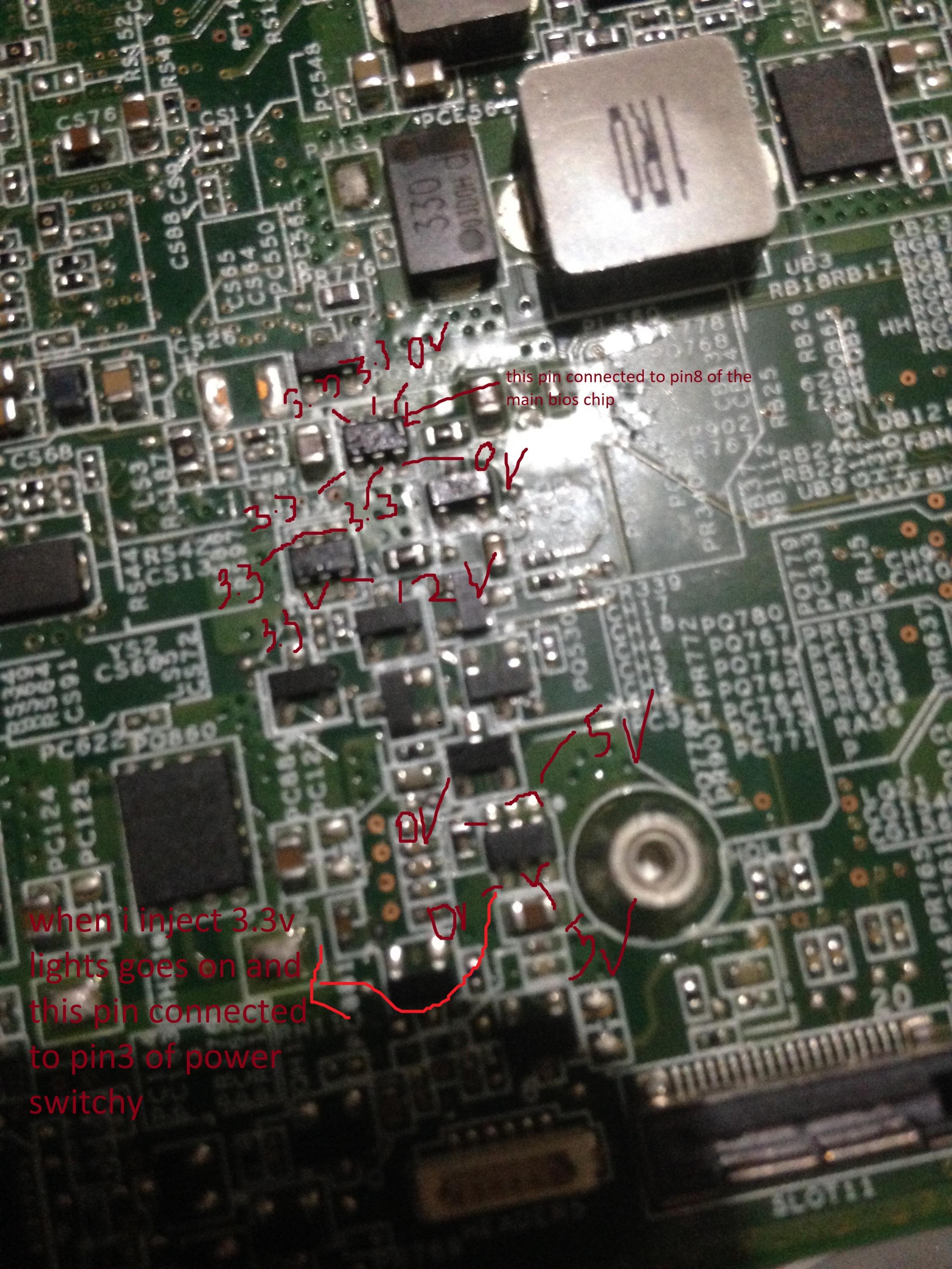 See if this schematic matches your board. If so, page 5 shows the power sequence. The steps are numbered in red. Measure each signal/rail in order until you find something that doesn't seem right. And then measure some more. Then post it all here.