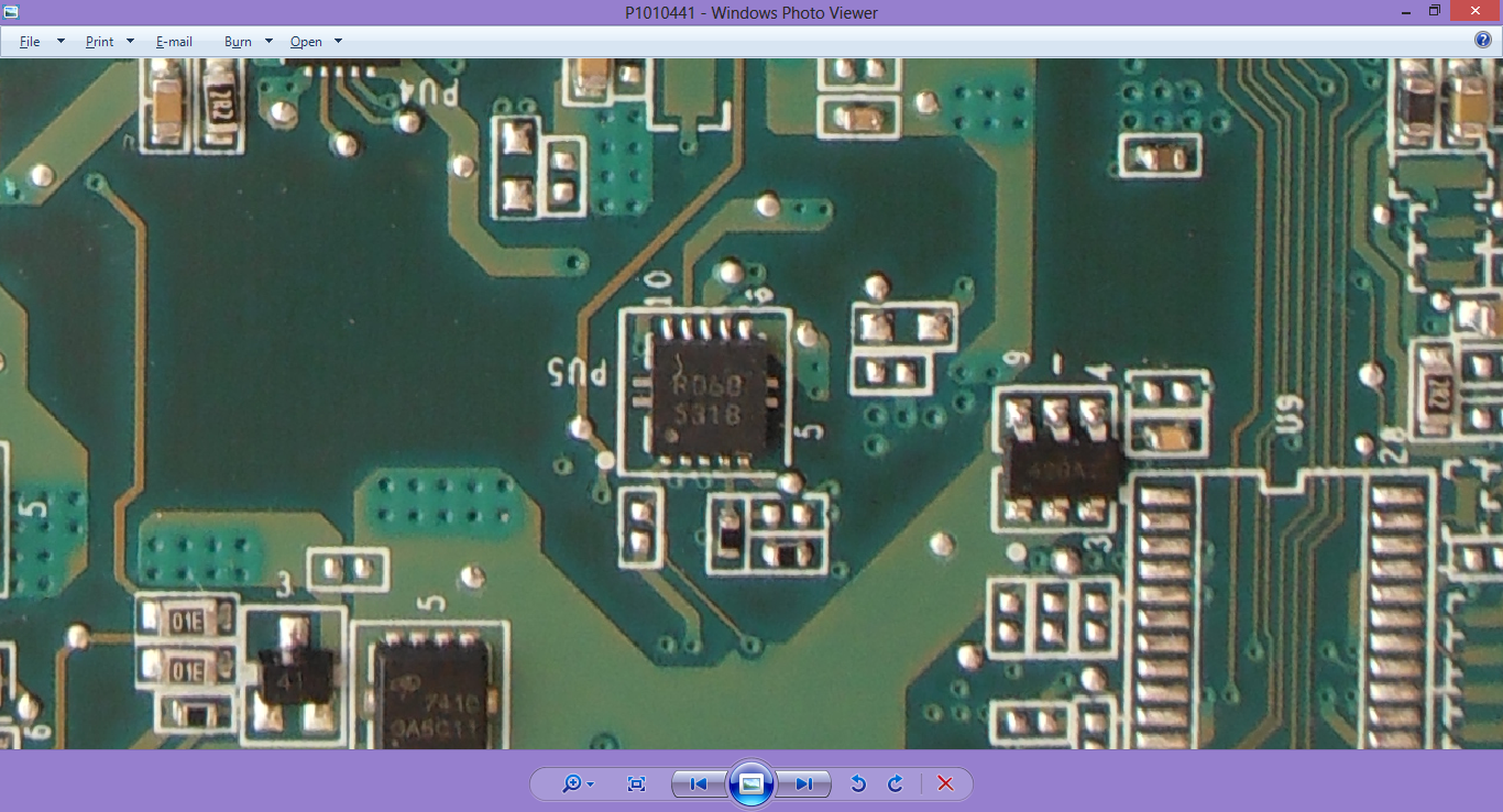 I have a toshiba C55t-C5300, motherboard model DABLQMB16B0 rev:B. No luck finding the schematic. This chip, marked PU4 consumes around 200 mA when 5v are put in with the bench power supply. Lower voltages do not turn it on. It heats up rather quickly. Markings appear to be 3G=2G and U25 underneath. It has 5 contacts on each side, total of 20. One appears to have a balled up solder joint. No power, no lights at all. DC jack ok.