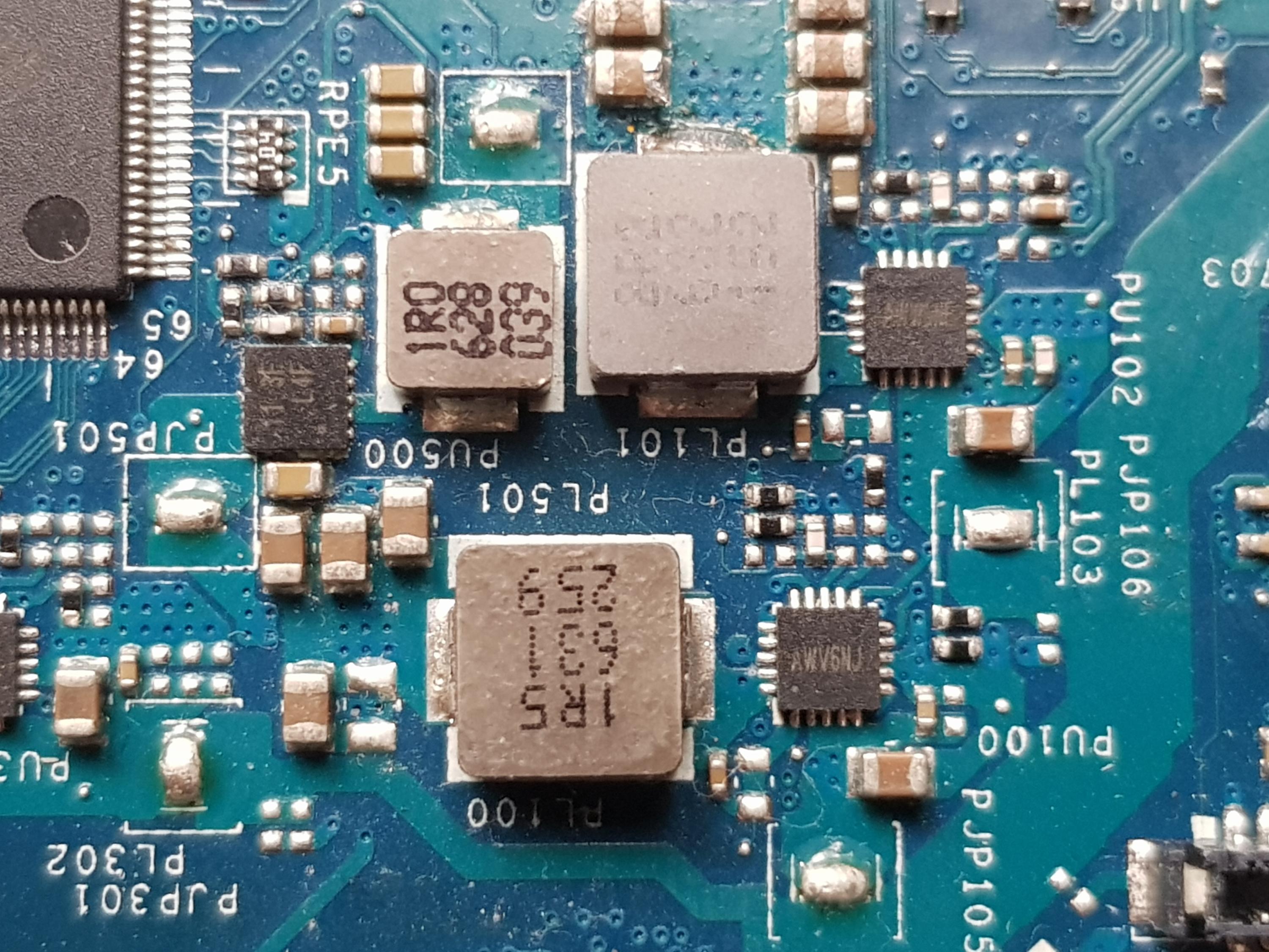 short circuit test done and chip AWV6NJ ( 20 PIN ) PU100 is heating up right next to 3,3v coil (pl100)