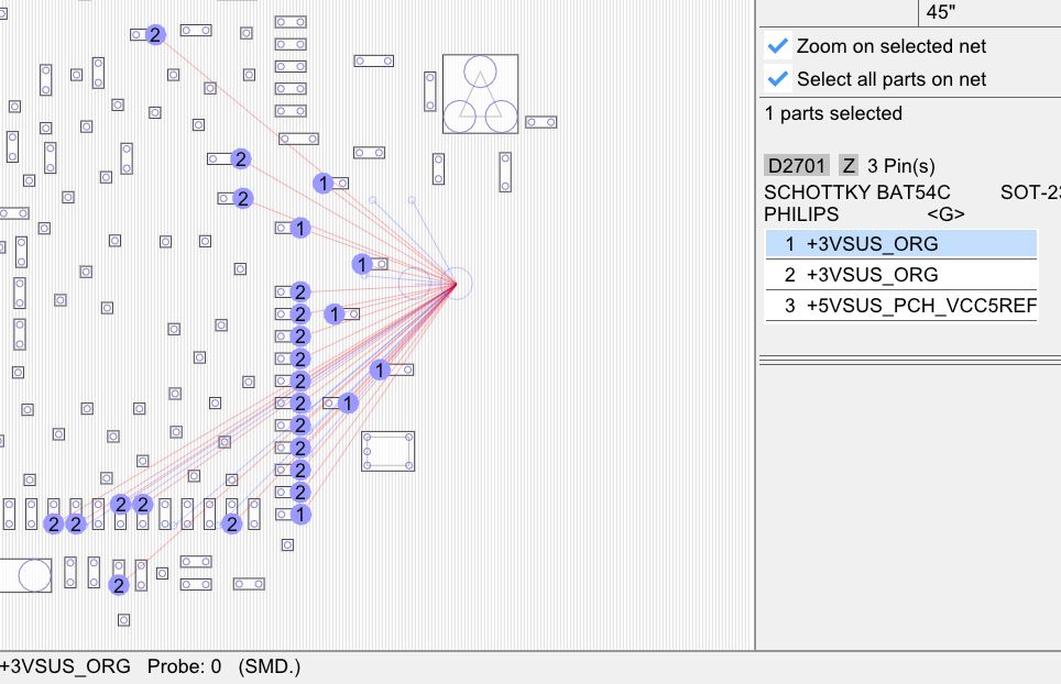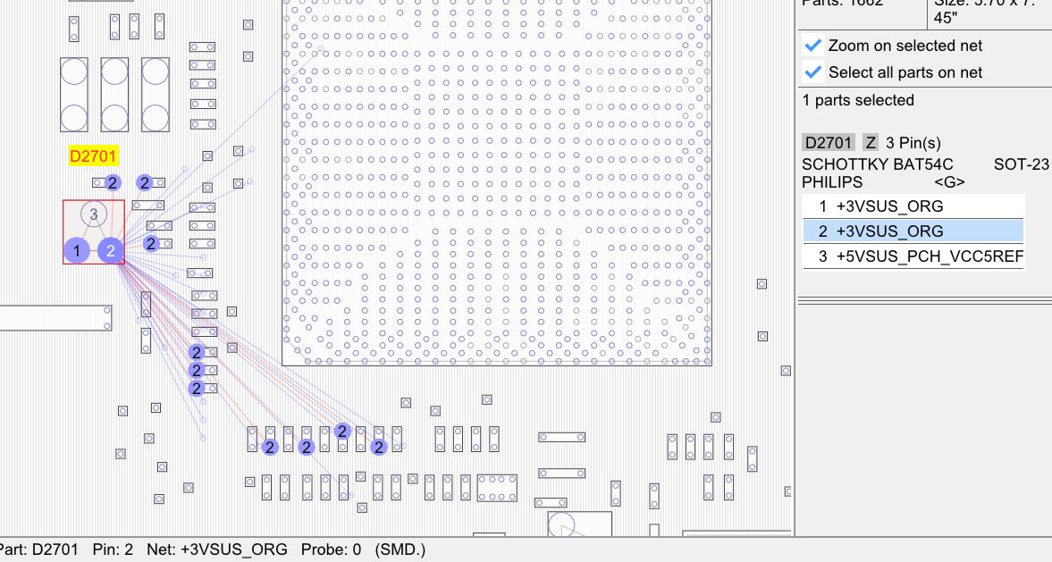 but when i use boardview it shows connections to 1 pin of the intel chip