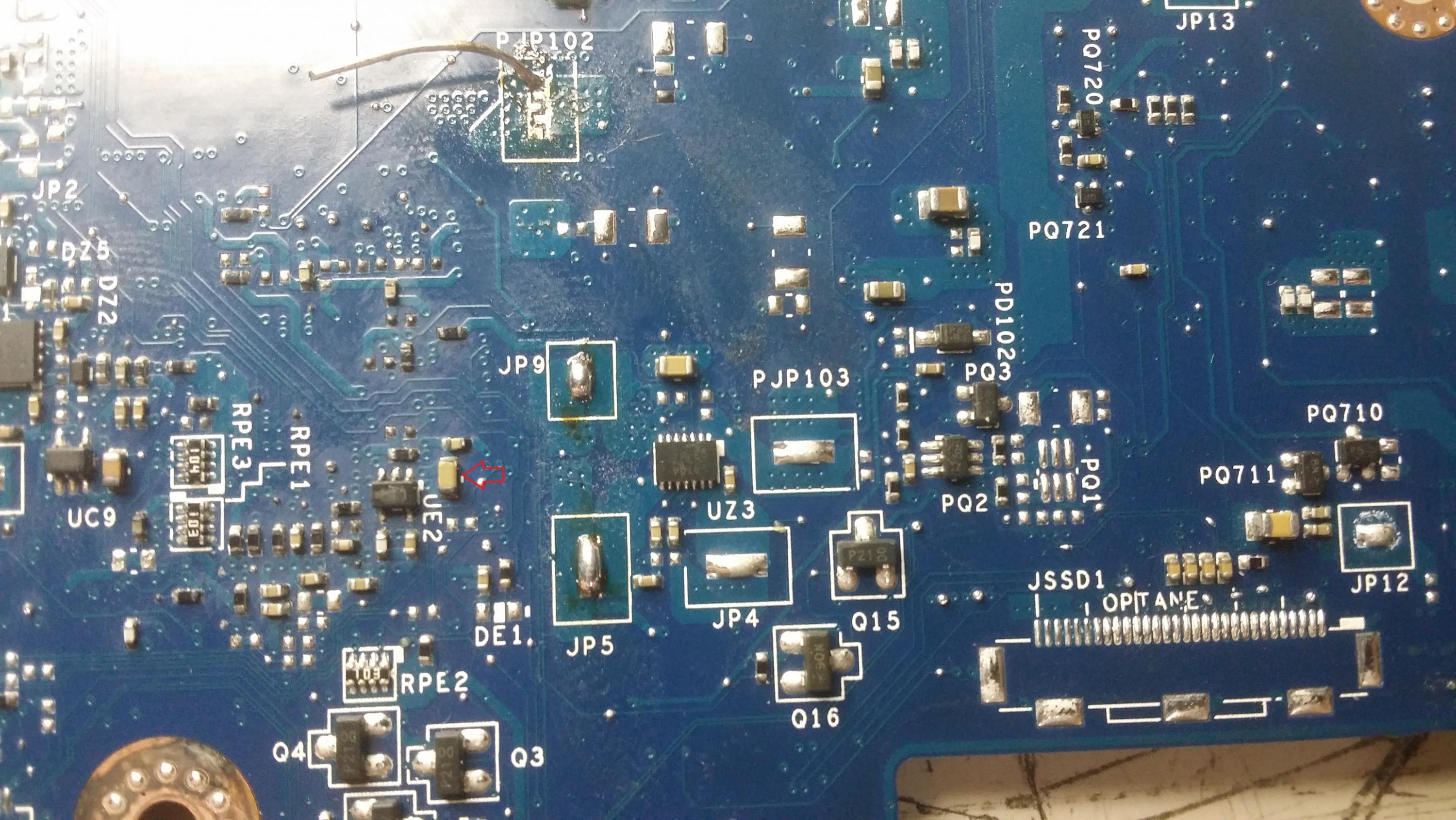 After you removed all the jumpers the only thing i can see thats left to check is UZ3 . If you want to wait to get a second opinion from @Dellxps15 or another member thats ok ,it is quite hard to solder,you need lots of flux and put new 60/40 solder on the pins.With such small pads its easy to damage the pads,don`t have the iron too hot,use lots of flux,run the iron across all the pads at once or with a fine tip and solder do one pin at a time.