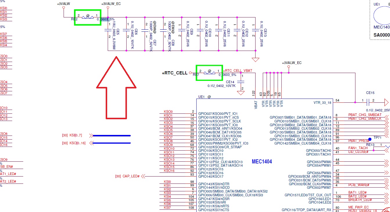 The green mark not mine, i used the red arrow pointing to 10Uf CE5