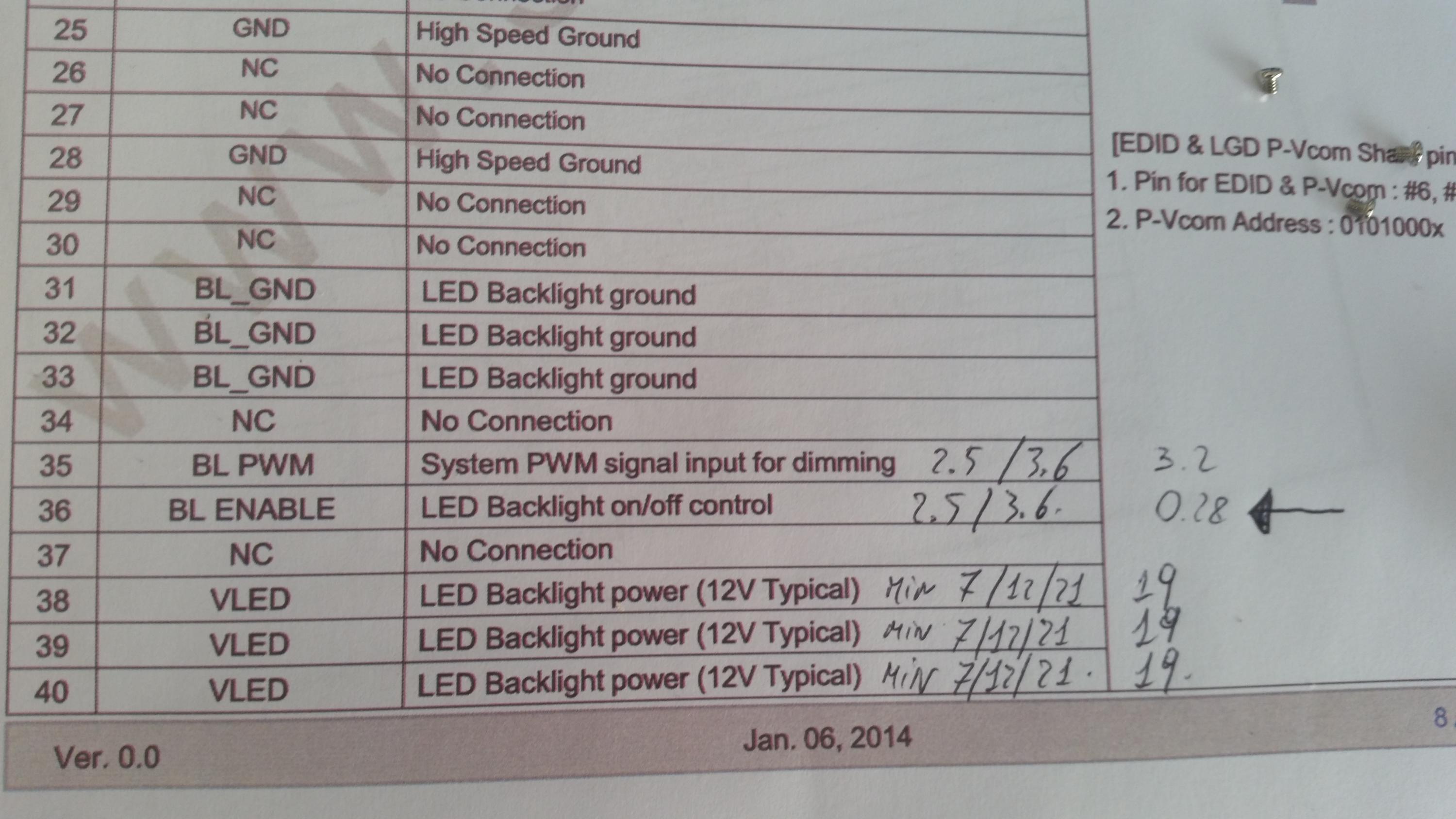 I have the image on the LCD but no backlight because the pin 36 (INTERFACE CONNECTION MODULE PIN CONFIGURATION - CONNECTOR LVDS) don't have the sufficient voltage