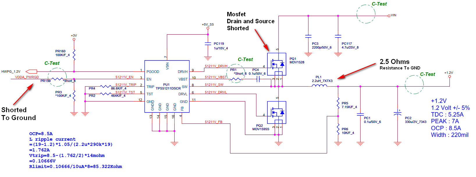 Culprit : Shorted VDDA_PWRGD line and solved by removing the PU1 and the unit power but no 1.2v