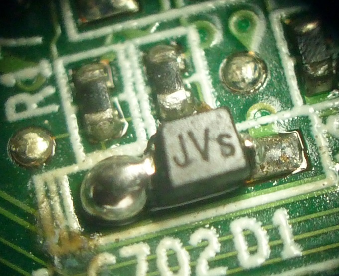 Photo where I show the state of a diode when opening the machine, it was practically split. it was corrected and the 4.9vdc tension goes from one side to the other.