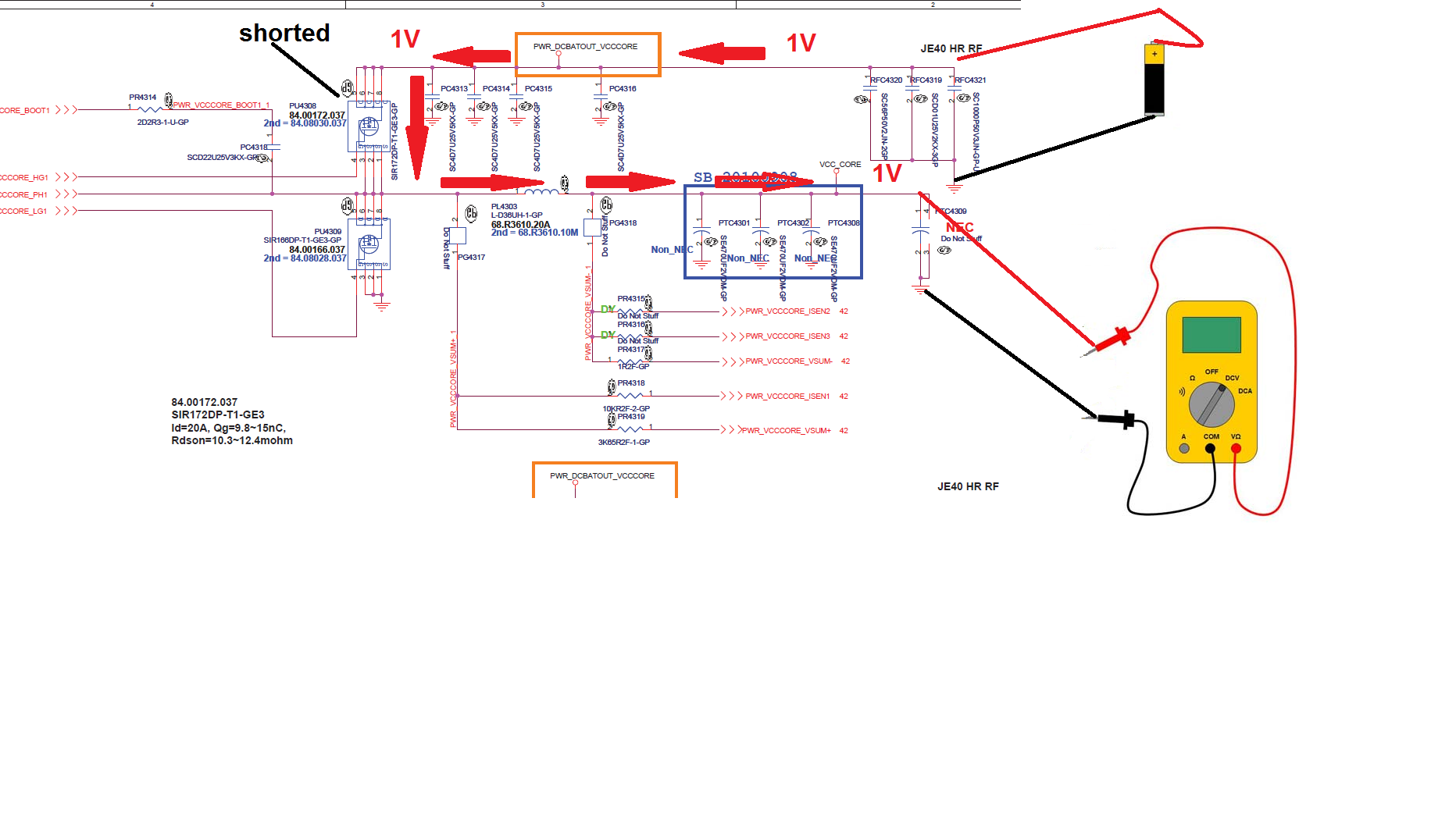 I've stripped the MB from the laptop and removed all accessories, so that just the main board is powered with the AC adapter only. I'm not getting the 20V to pass through the PQ304 MOSFET. Would like some help in what I should be looking for to help diagnose the issue.