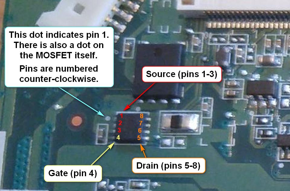 Step 1: Test input MOSFETs PQ5 and PQ9 for shorts (see pic #1).