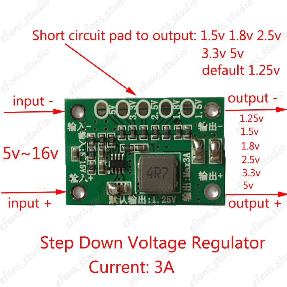 it said 1.25 volt output and if you want greater than 1.25 volt you must solder appropiate bridges (top side of picture)