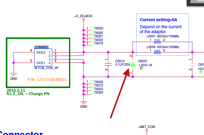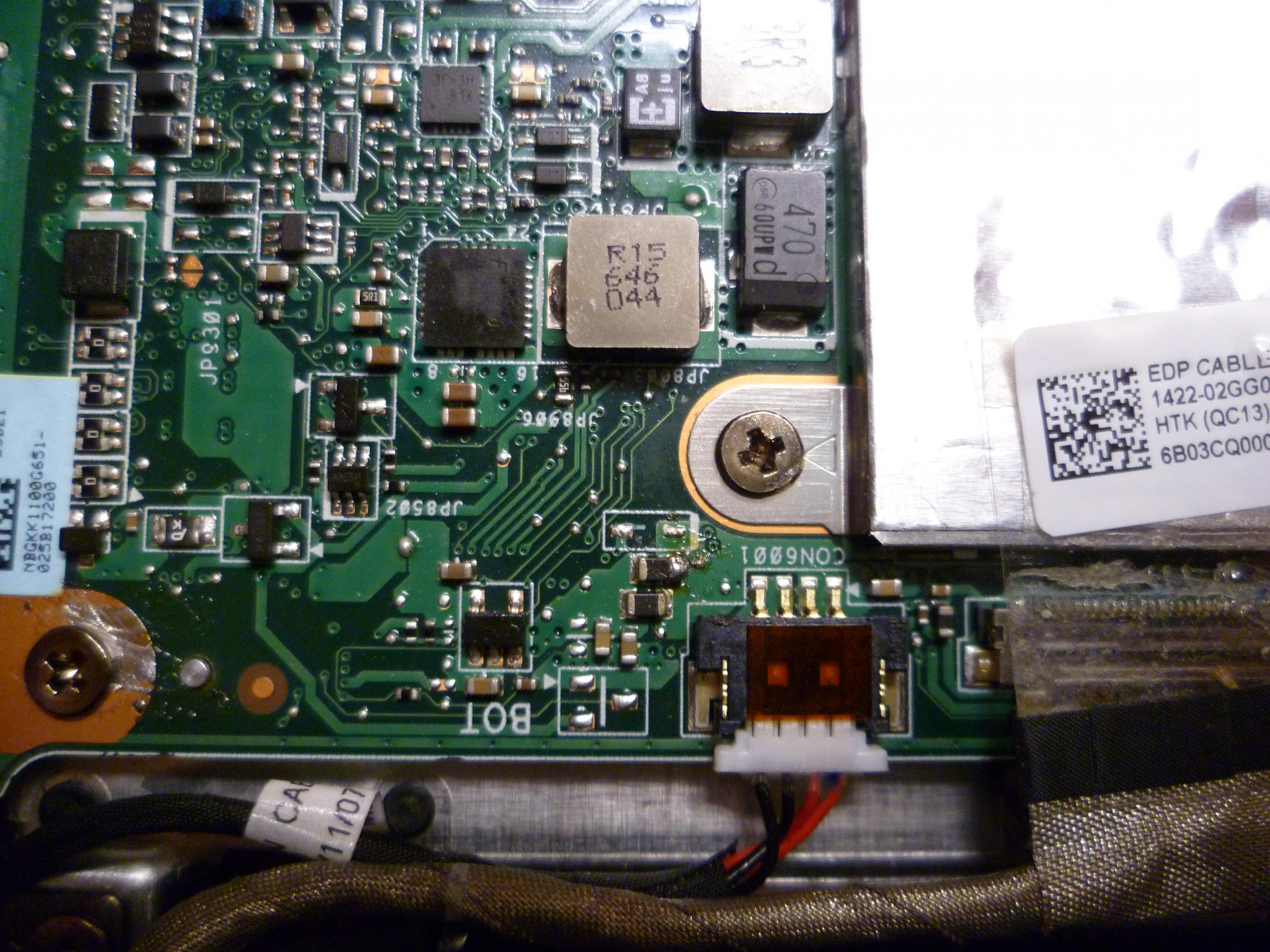 Pictures of motherboard attached, i get 19V on the power connector and 15.2V (which is the rating of the battery) on the battery connector along with 3.3V.