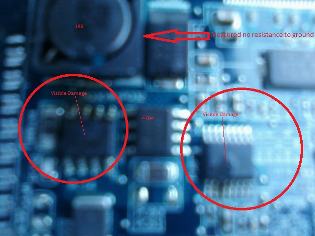 I have an interesting one now, an Acer aspire. It powers on by itself but displays no video. Reflowed GPU - no effect. Pressed slightly on Max8760. Afterwards, board would beep one time each second. Strange beeping sound, almost like a blinker in a car - and I was unable to determine where it was coming from. Reflowing 8760 stopped beeping, but still no video. The 8760 is the dc-dc for the CPU, and the cpu is cold when power is applied. NB & GPU get warm, but not CPU. Could this mean that the 8760 is bad? I ordered some samples just in case. I checked the resistance from the inductors like you said previously, nothing below 20 ohms. No visible damage and no obvious shorts (checked caps).